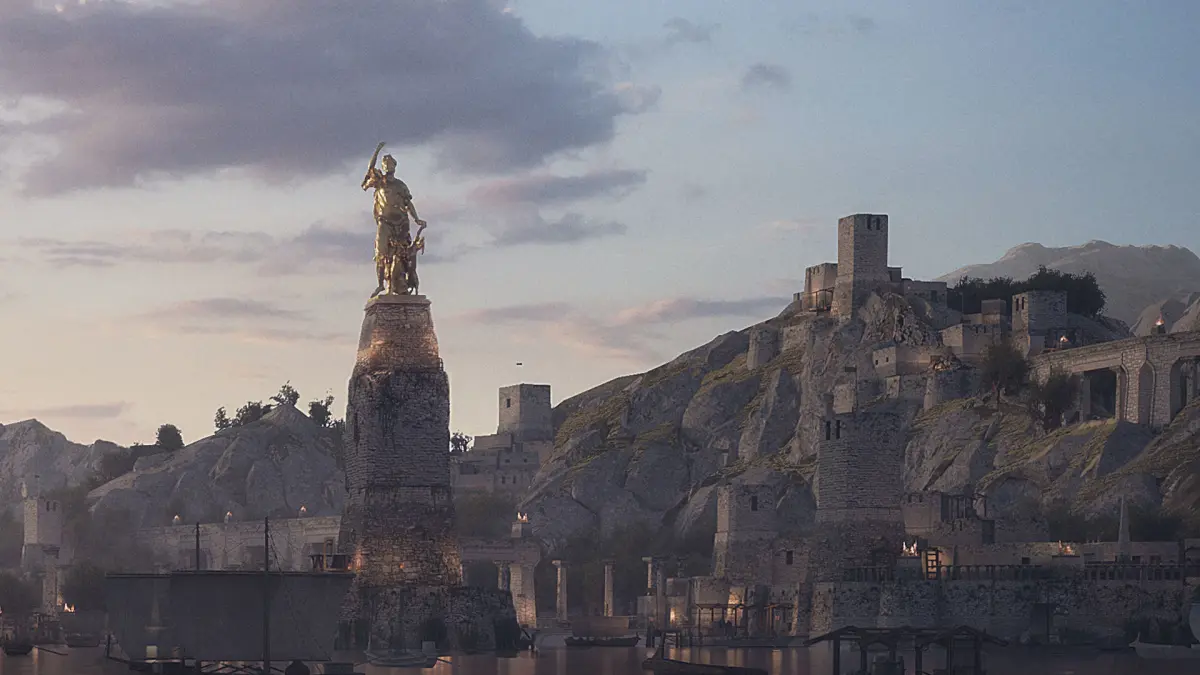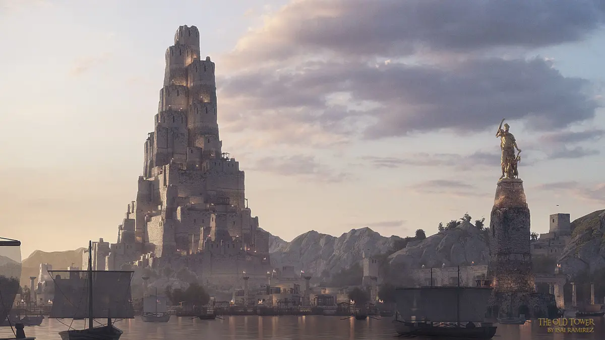 Here is The Old Tower scene, and the psd with the postproduction of this image https://www.artstation.com/artwork/QrL3q4 only you need use ACES CG for vray to render with the OCIO color correction.