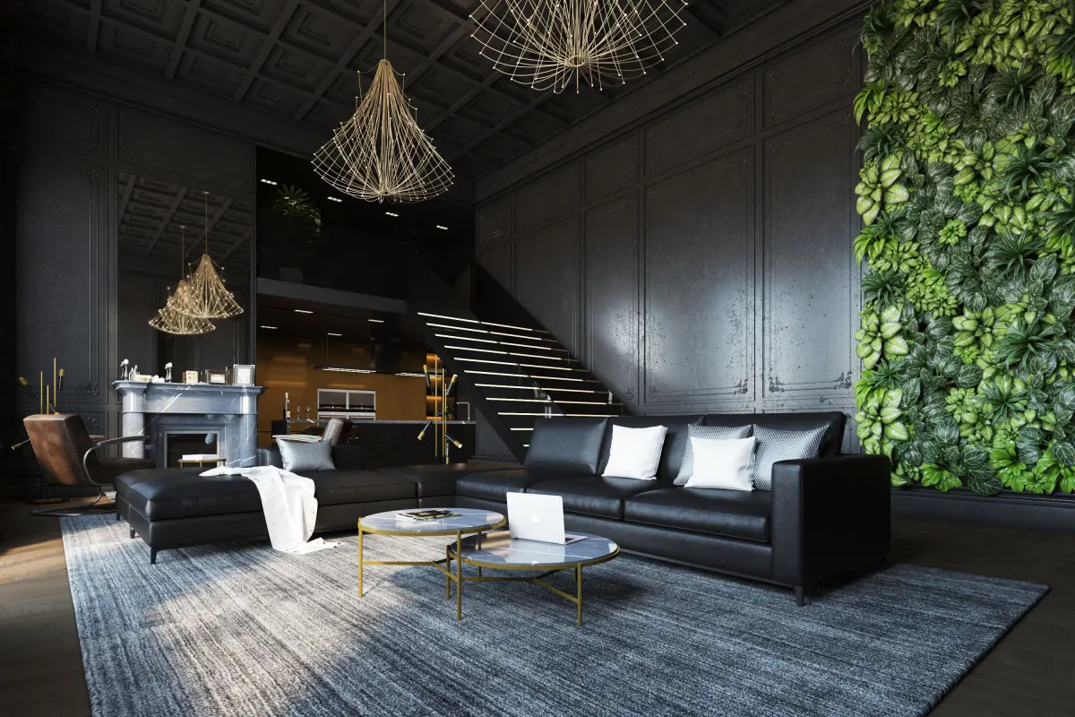 Oven, Microwave, Chair, Table, Curtain, Sofa, Floor Lamp, Coffee Table, Armchair, Fireplace, Chandelier, Pendant Light, Fauchet, Wall Plant, Sink etc..