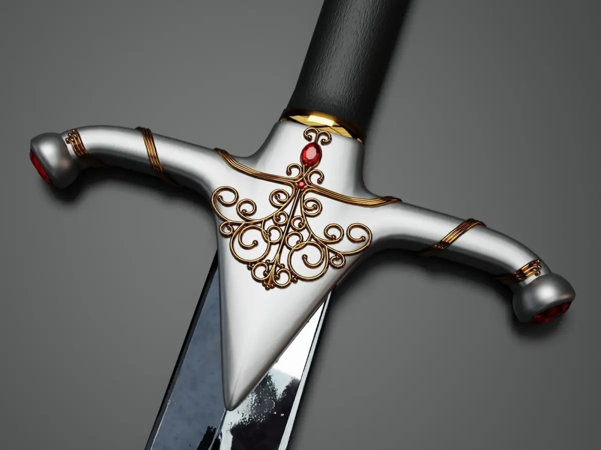We did not use any texture for the rest of pieces of the sword, we have only used blender materials (illustrative pictures are included with textures file)
