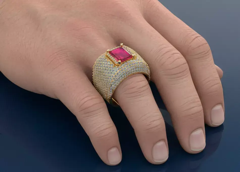 A statement piece for the modern man. The Regent King features a commanding, cushion-cut center stone framed by hundreds of brilliant-cut diamonds across. A magnificent and opulent design that demands attention.