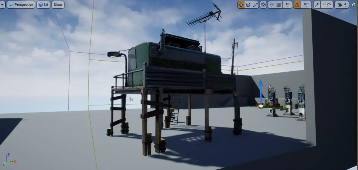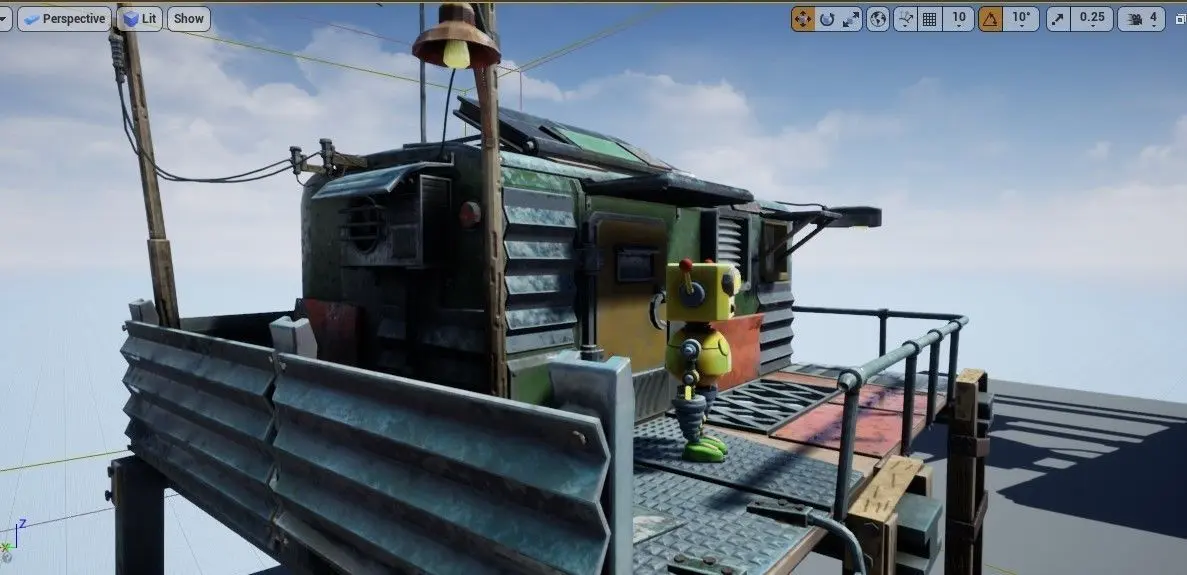 A pack of the stylized Robot and his shack ready for a game engine
