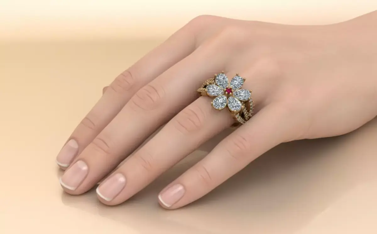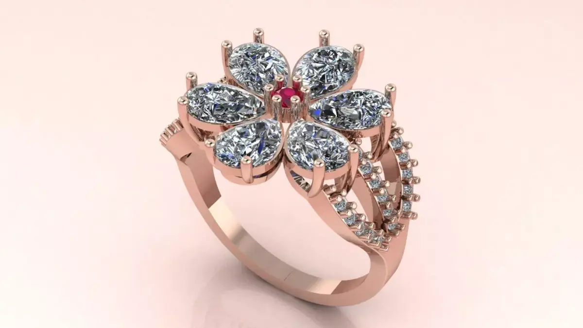 The Royal Blossom Cocktail Ring jewelry 3D model - for Her