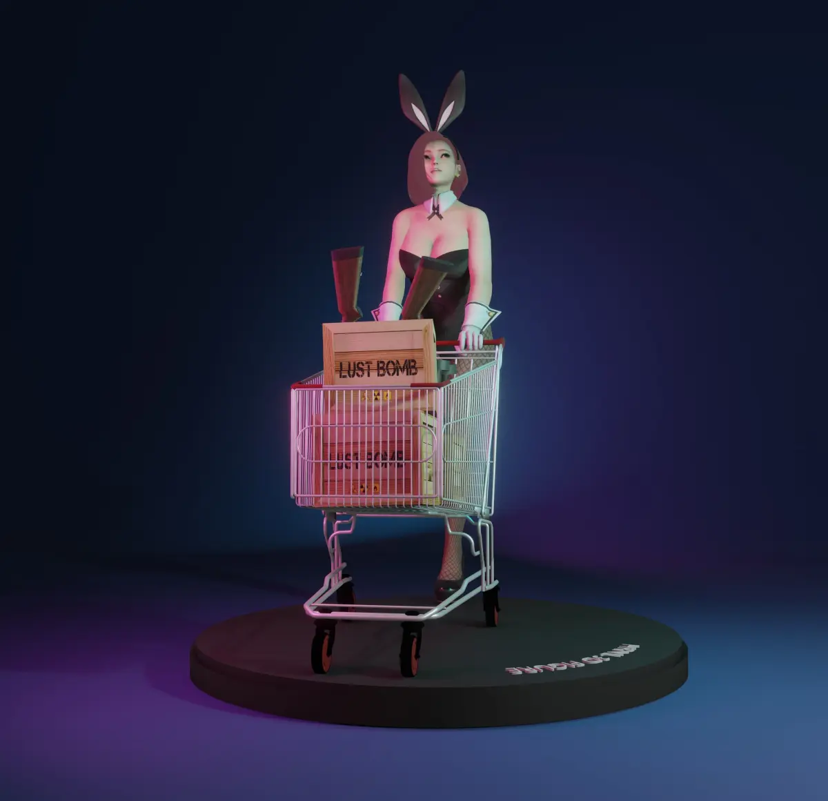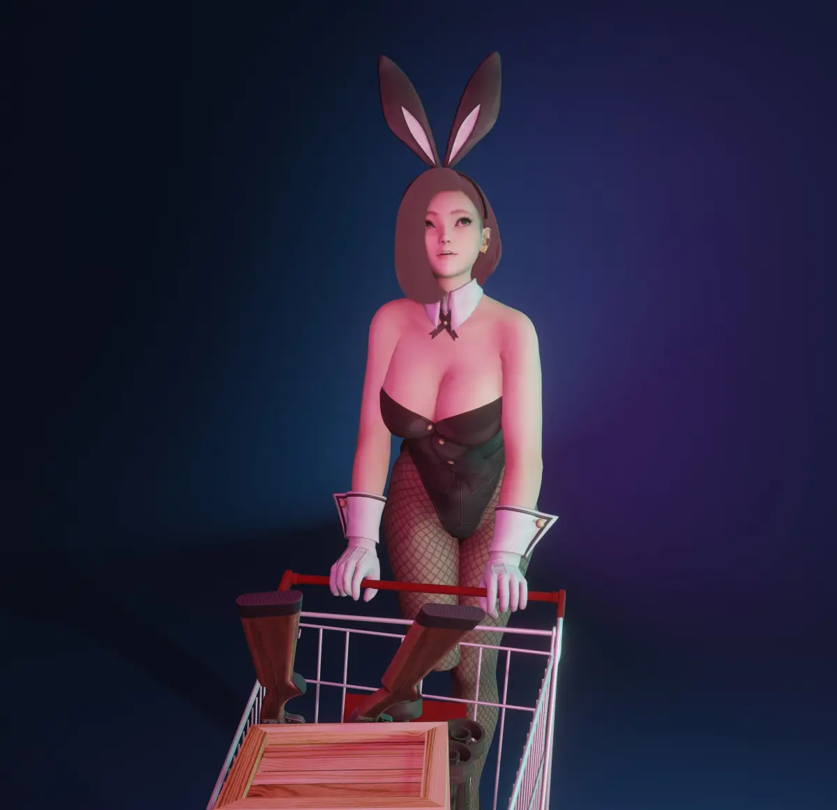 This Bunny girl is shopping for armory, comes complete with her standing base!