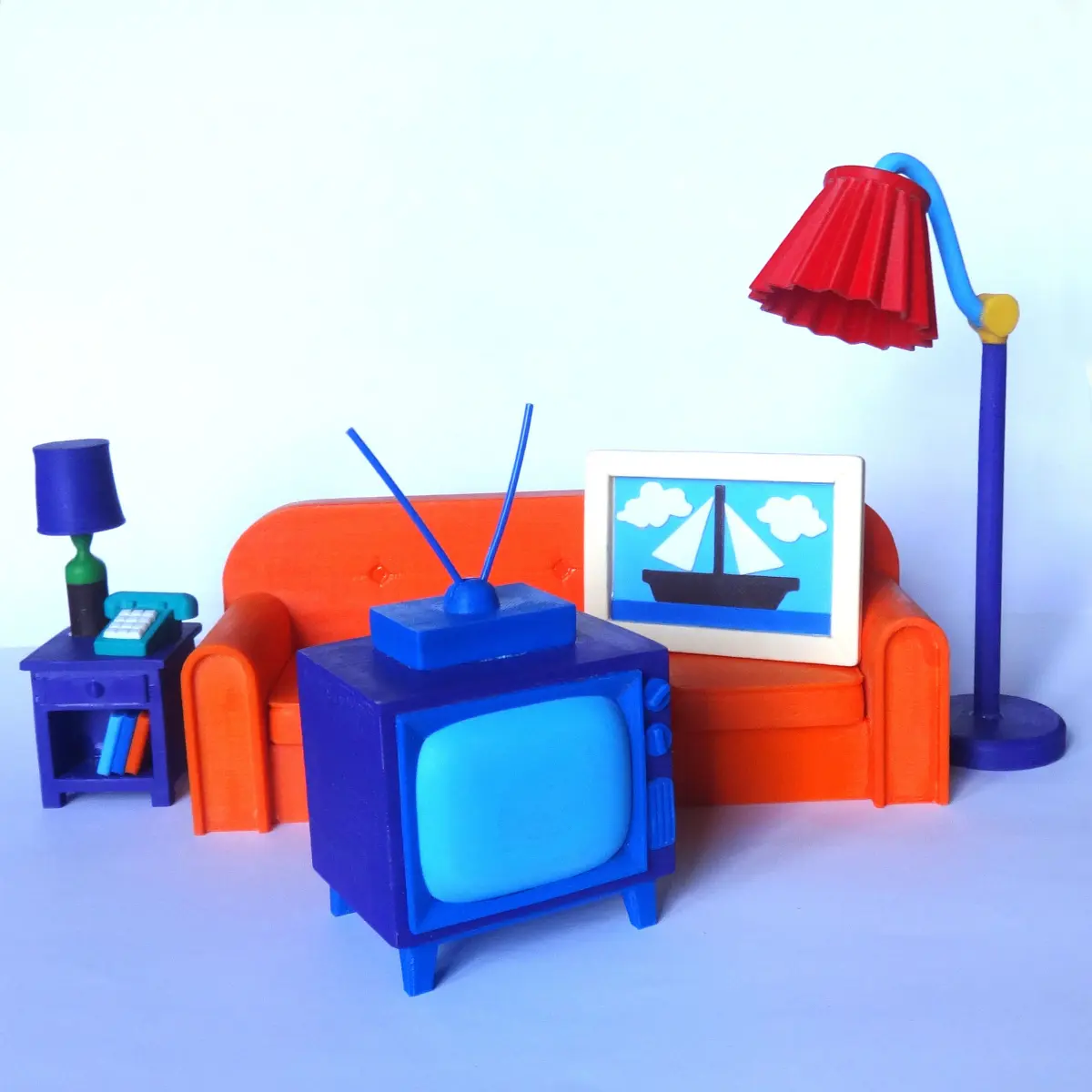 The original size f the scene is 500x250mmNumber of STL files: 37 (Each has a name of a stadard 3D Print color)OBJ, 3DS, FBX files contain the whole scene as one file, but separate objects.