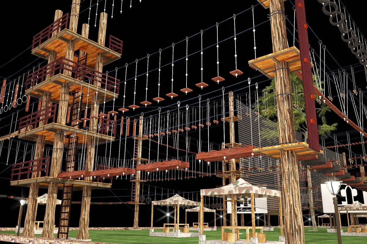 3D model of the site of competitions for crossing obstacles at height (Jamboree)With maximum details and scale 1: 1Ready to build 3D games of obstacles crossing competitions (similar Jamboree competetions). With Game Design and Level Design