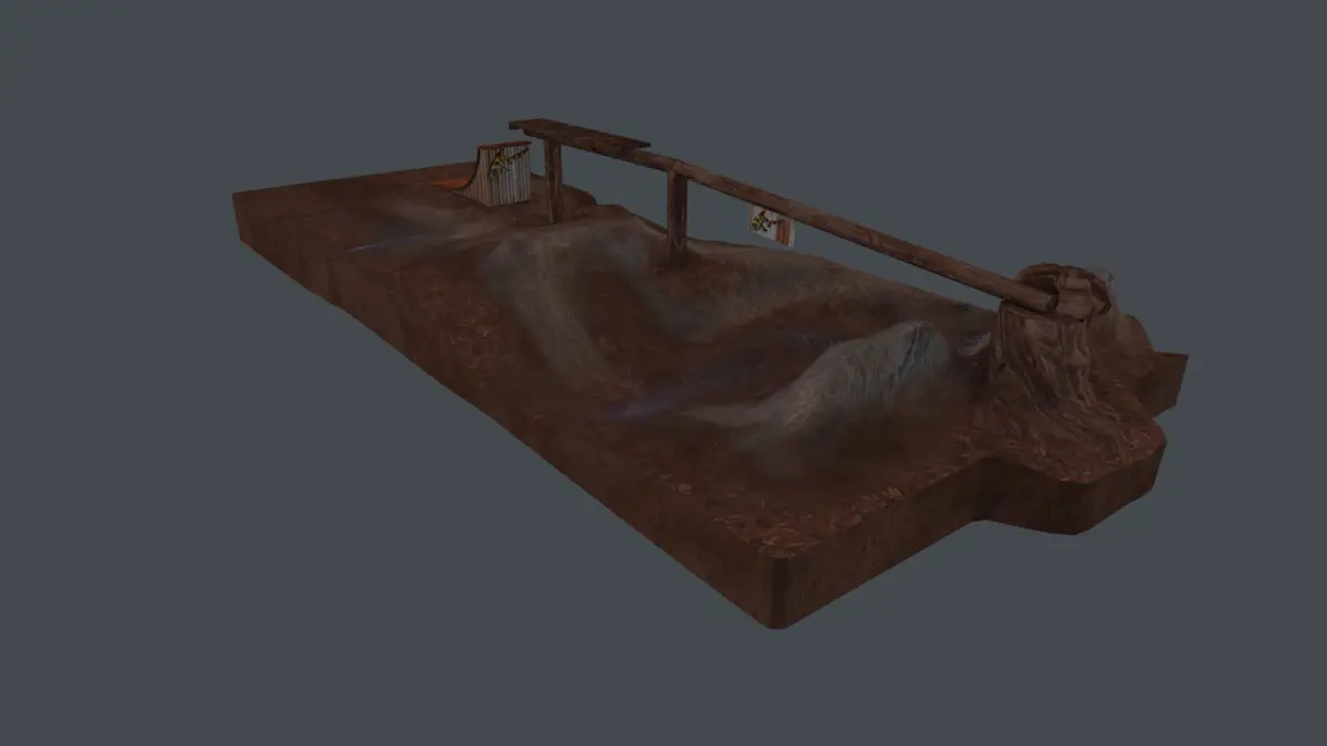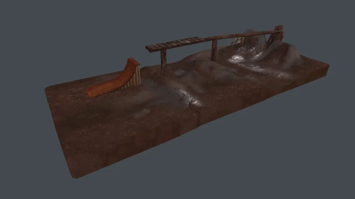 An Intricate jump that has the rider launching off a wood ramp to a balance beam to drop into a sequence of mud / clay jumps that take the rider up over and under the balance beam.Textures are set at 2048 x 2048. Game ready.