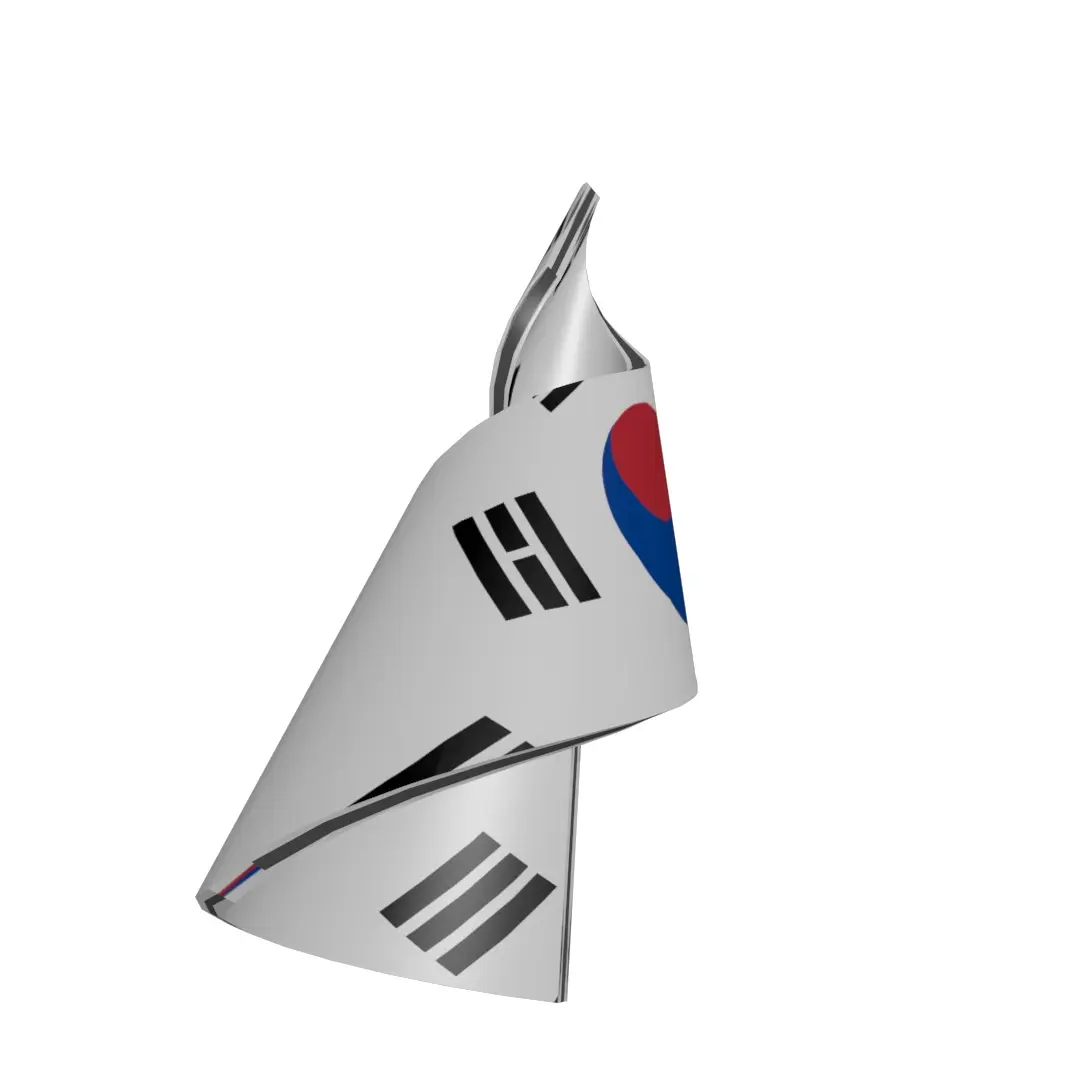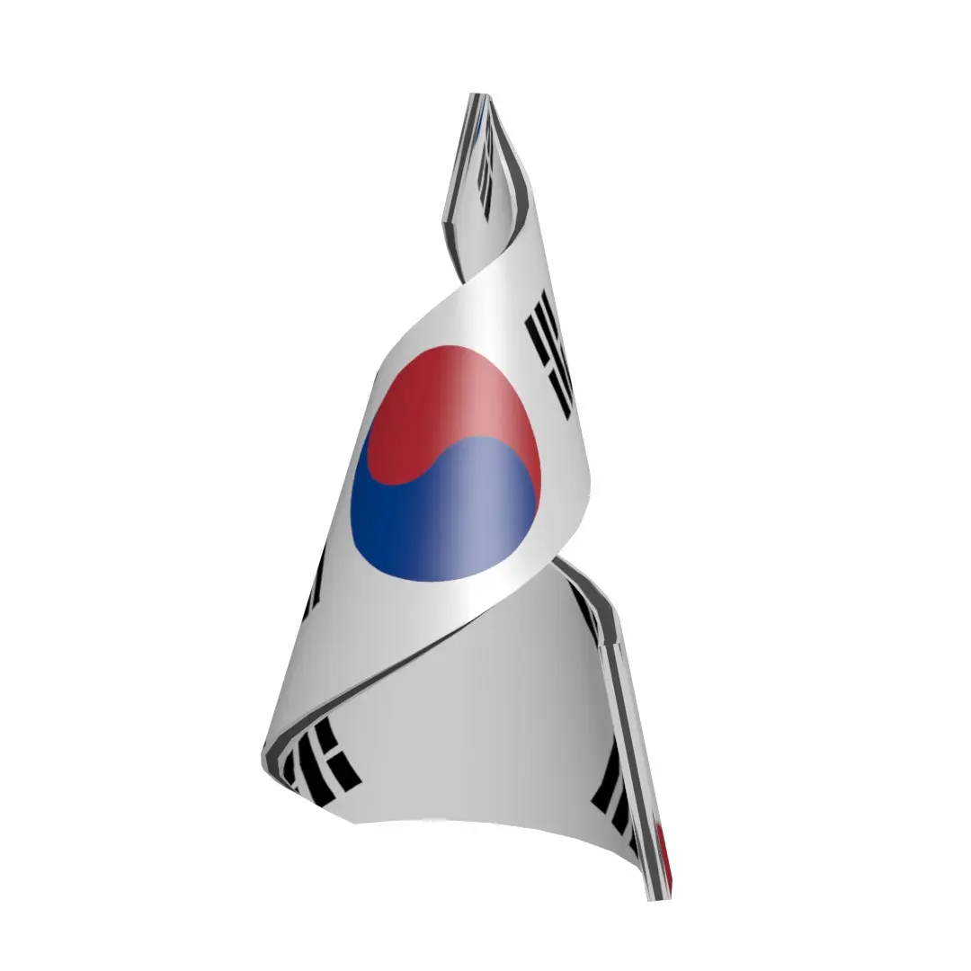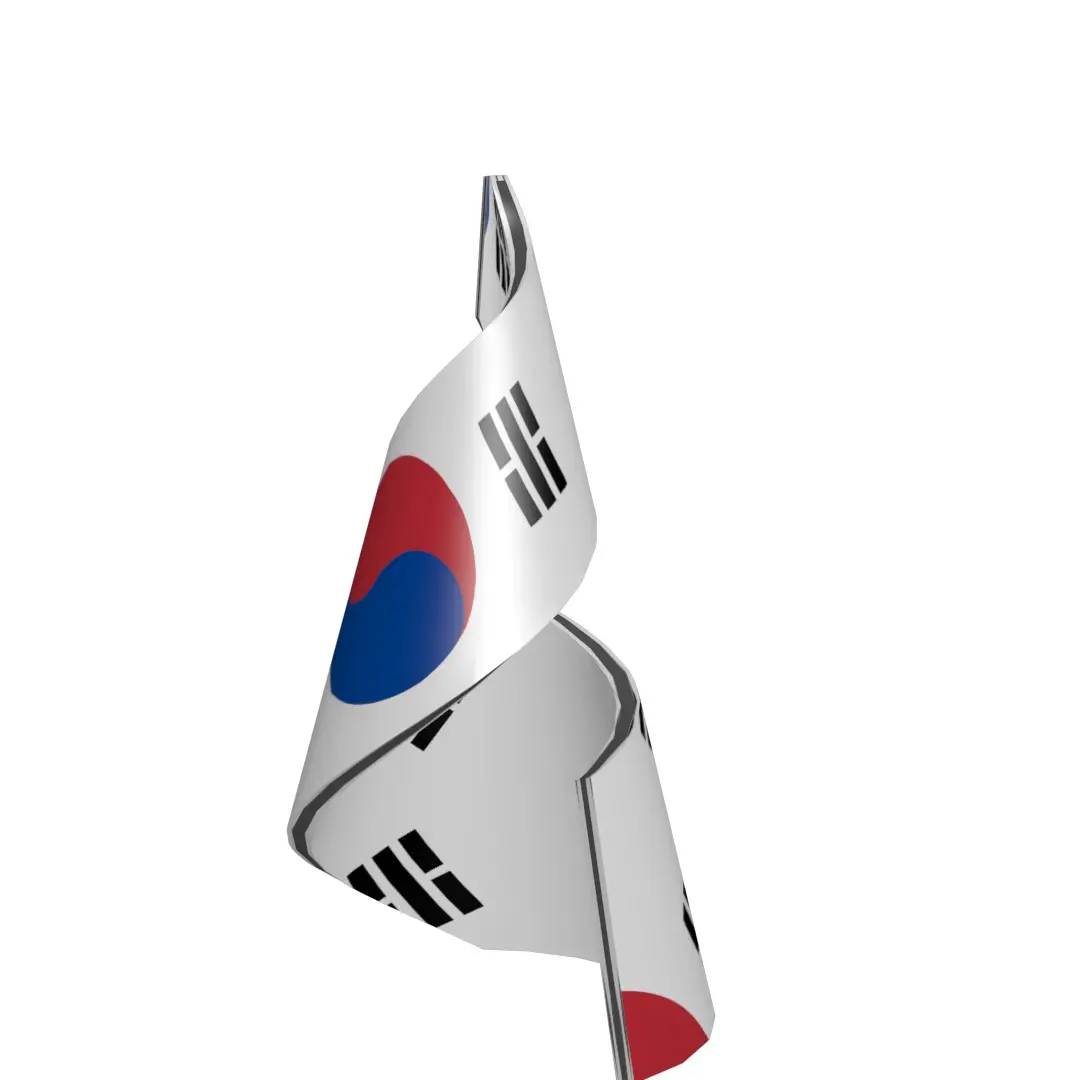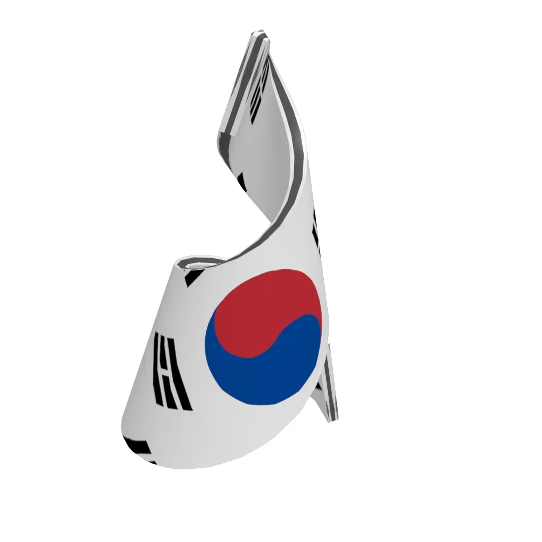 A 3D Model Of the South Korean Flag of different extensionsThe colors of the flag are red, blue, and black on a white background. The flag stands for the three components of a nation: the land (the white background), the people (the red and blue circle), and the government (the four sets of black bars or trigrams).the Republic of Korea is a country in East Asia. It constitutes the southern part of the Korean Peninsula and borders North Korea