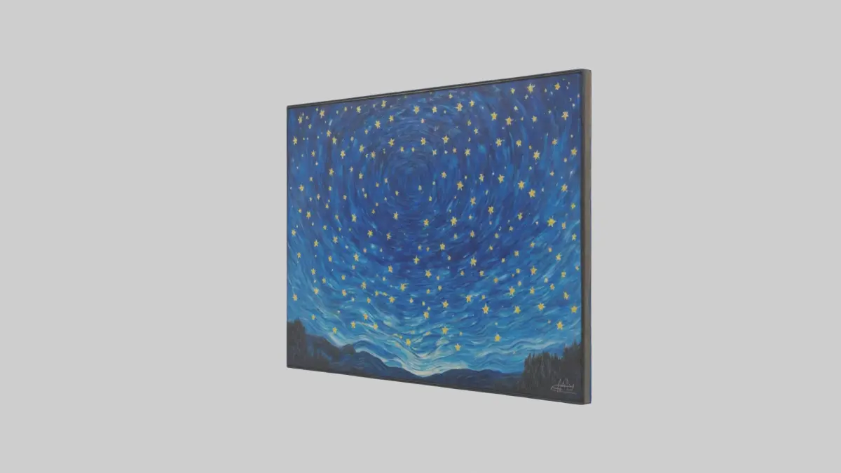 Starry Night painting, Vincent van Gogh, famous artwork, 3D model, art enthusiasts, digital recreations, 3D visualizations, artistic interpretation, historic artwork, artistic model, cultural heritage, 3D rendering, artistic expression, visual art