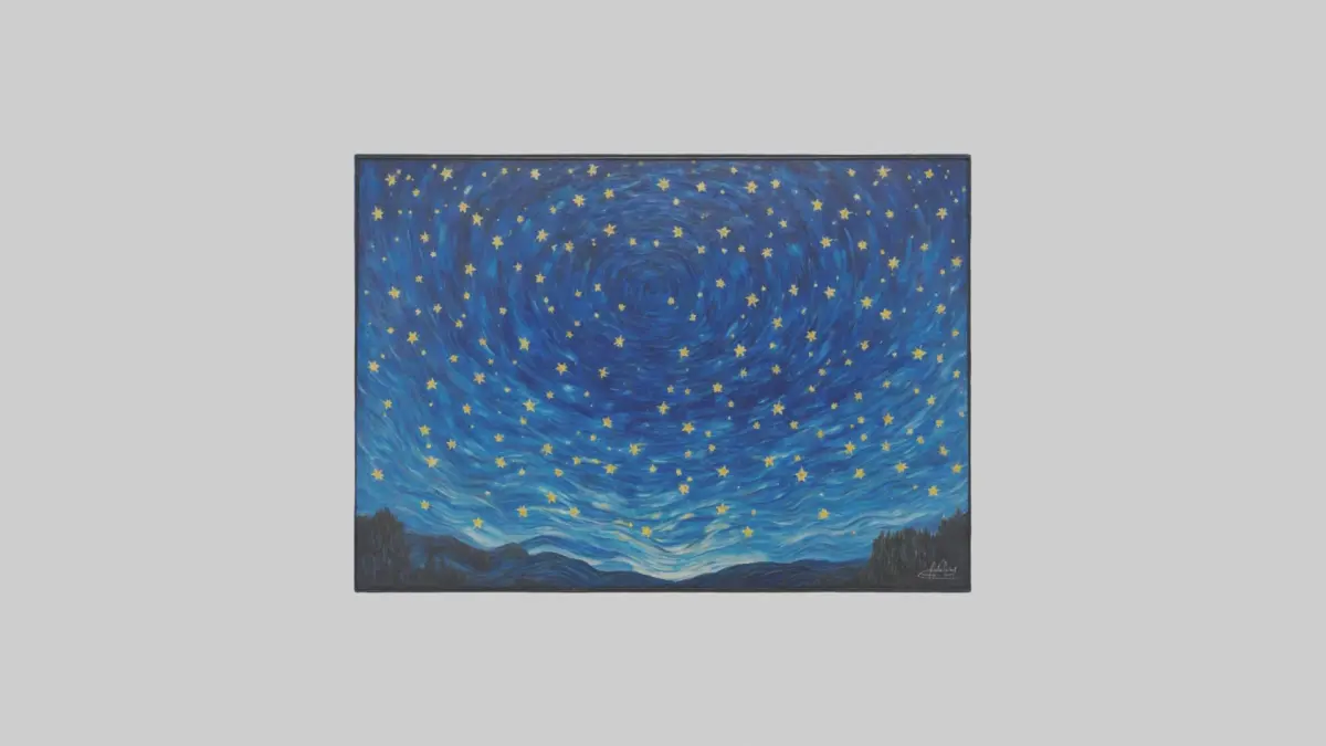 Sternennacht-Gemälde, Vincent van Gogh, berühmtes Kunstwerk, 3D-Modell, Kunstliebhaber, digitale Reproduktionen, 3D-Visualisierungen, künstlerische Interpretation, historisches Kunstwerk, künstlerisches Modell, kulturelles Erbe, 3D-Rendermethode, künstlerische Ausdrucksweise, visuelle Kunst