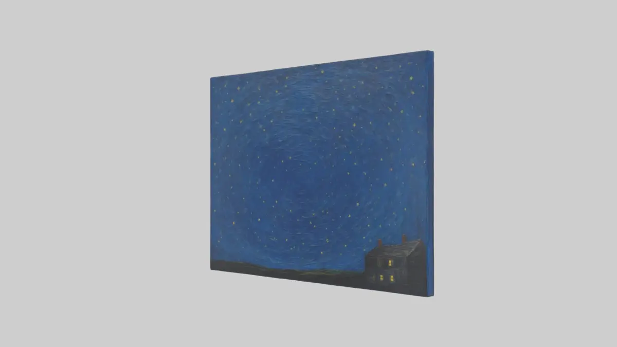 Yıldızlı Gece tablosu, Vincent van Gogh, ünlü sanat eseri, 3D model, sanat severler, dijital yeniden yaratımlar, 3D görselleştirmeler, sanatsal yorum, tarihi sanat eseri, sanatsal model, kültürel miras, 3D render, sanatsal ifade, görsel sanat