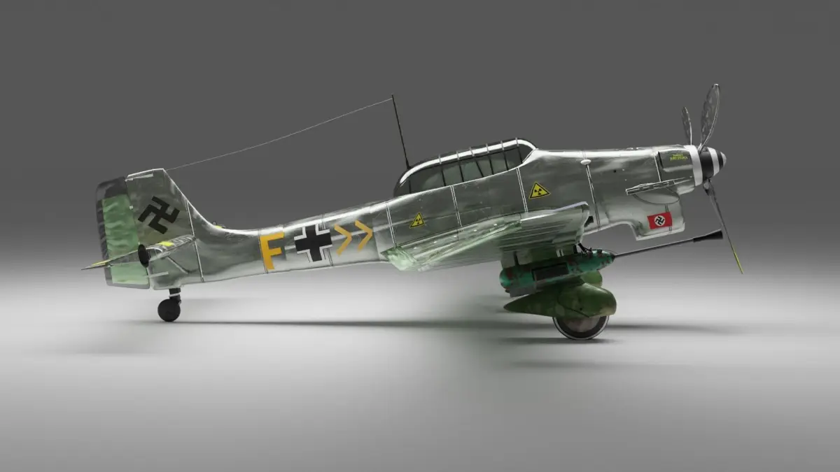 The Junkers Ju 87 or Stuka was a German dive bomber and ground-attack aircraft. The blend file of this model is packed. use textures.rar file If you download this model as FBX or OBJ files. If you download the FBX or OBJ files, you have to edit the bace colours of each textures a little bit. Thre are many stickers included in this plane, you can easily change the textures of stickers youself, all stickers are completely editable. You can easily edit or change every part of this model. EVERYTHING is completely editable.