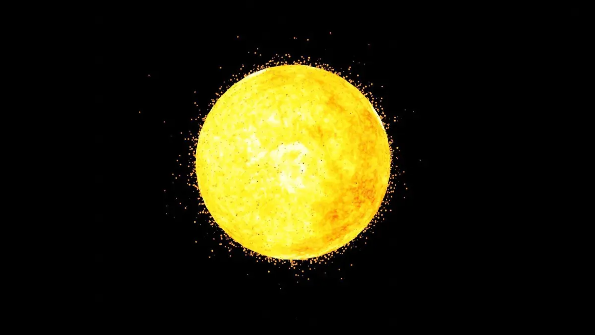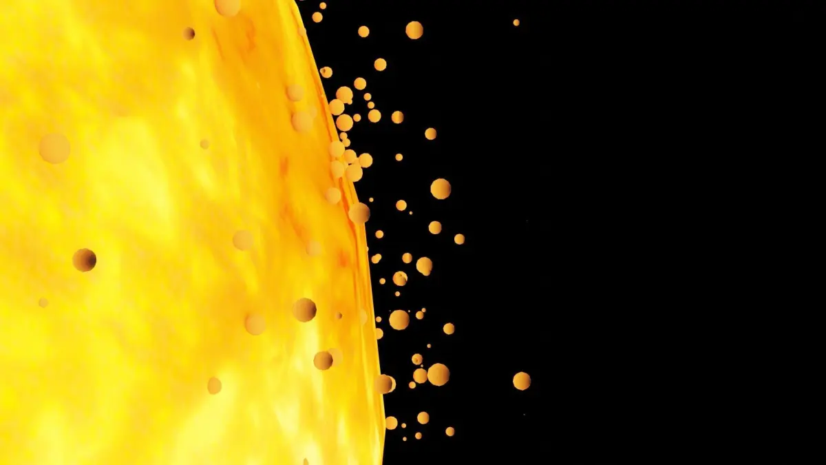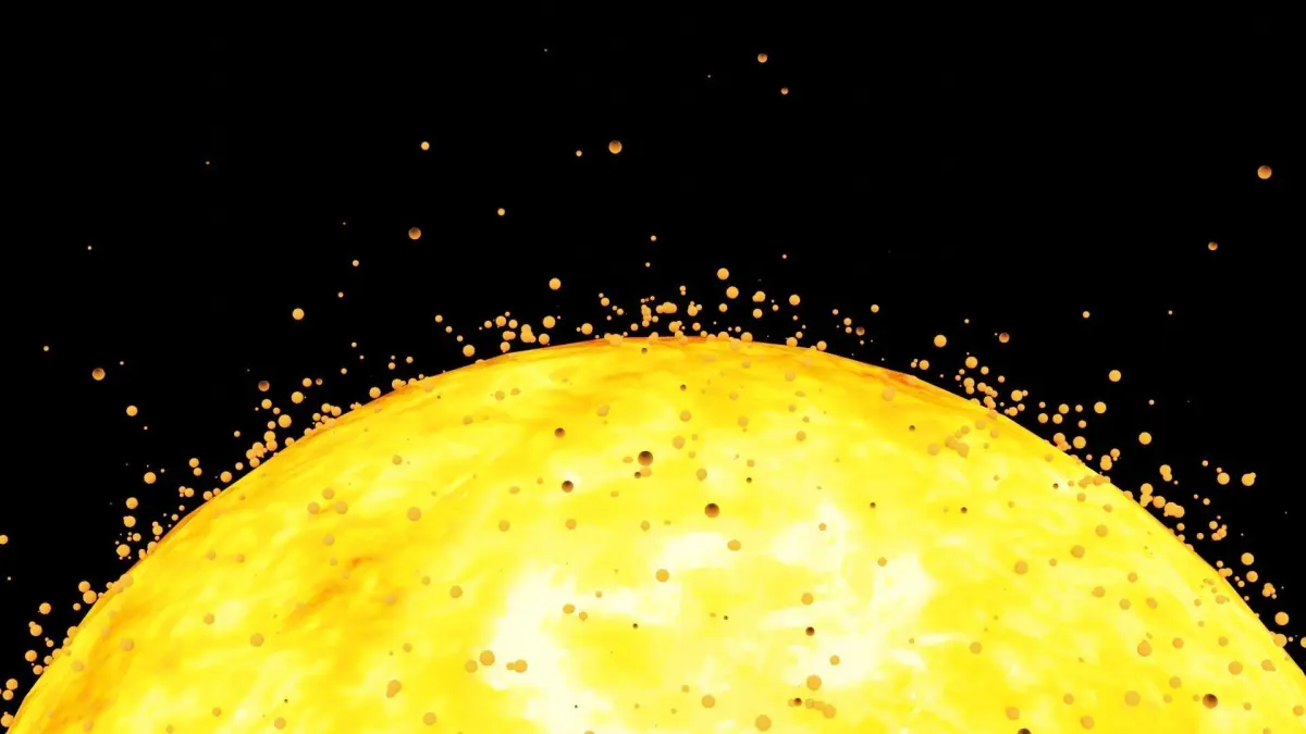 A photorealistic low poly model of The Sun, including custom particle effects representing solar flares, made in Blender v 2.80
