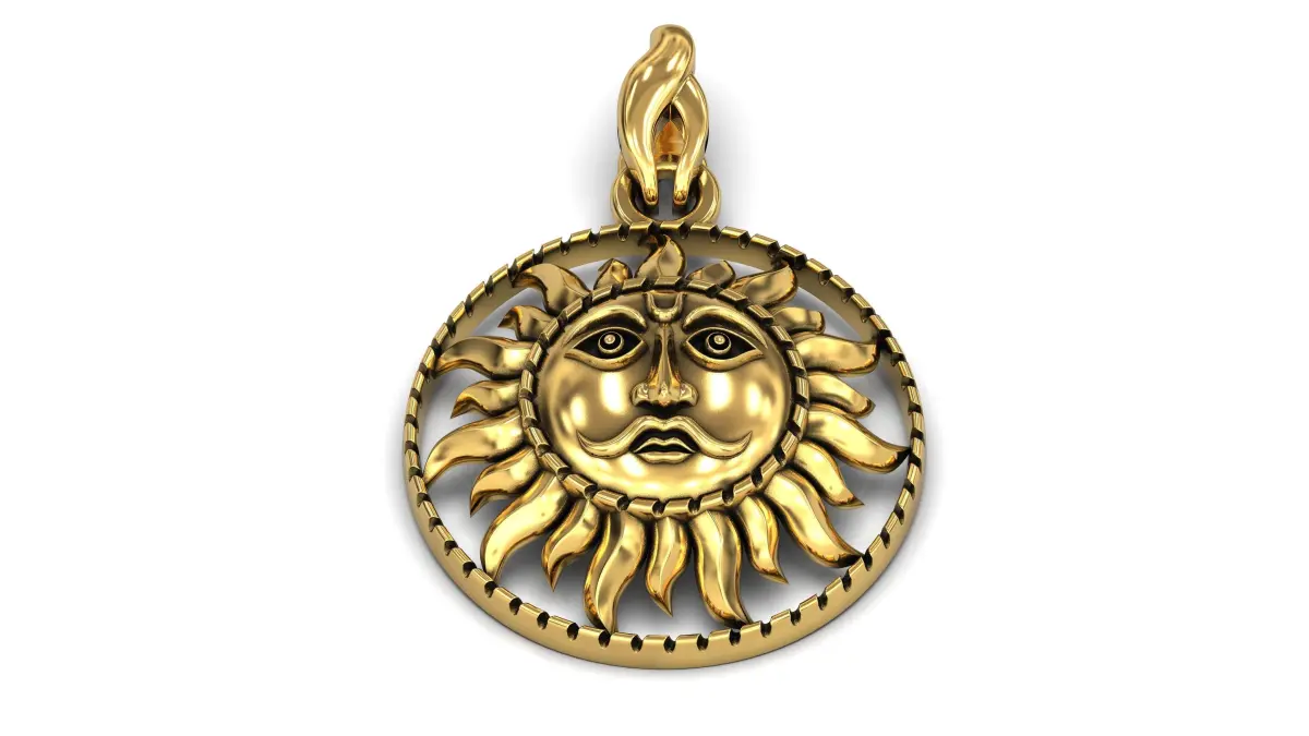 The sun- The god of power and energy. Sun is the life-giving energy that's necessary for us to survive. As such, sun symbolism represents life, energy, positivity, clarity, confidence, and more. It's an ever-present symbol that always formed a large part of people's lives. Even in the centuries past, people from all over the world appreciated this symbol.When talking about the Sun in Astrology, we think of heat, power, life, and energy. At the Vedic Astrology level, the Sun is Jyotish or the soul of a person. As the saying goes, "Home is where the heart is.” The Sun represents where your heart lies in your chart.Width = 25.6 mm, Depth = 7.96 mmWeight in silver = 4.9 grms approx.Weight in 18k gold = 7.4 grms approx.Actual weight will be less than estimated weight.
