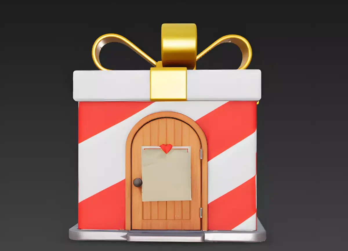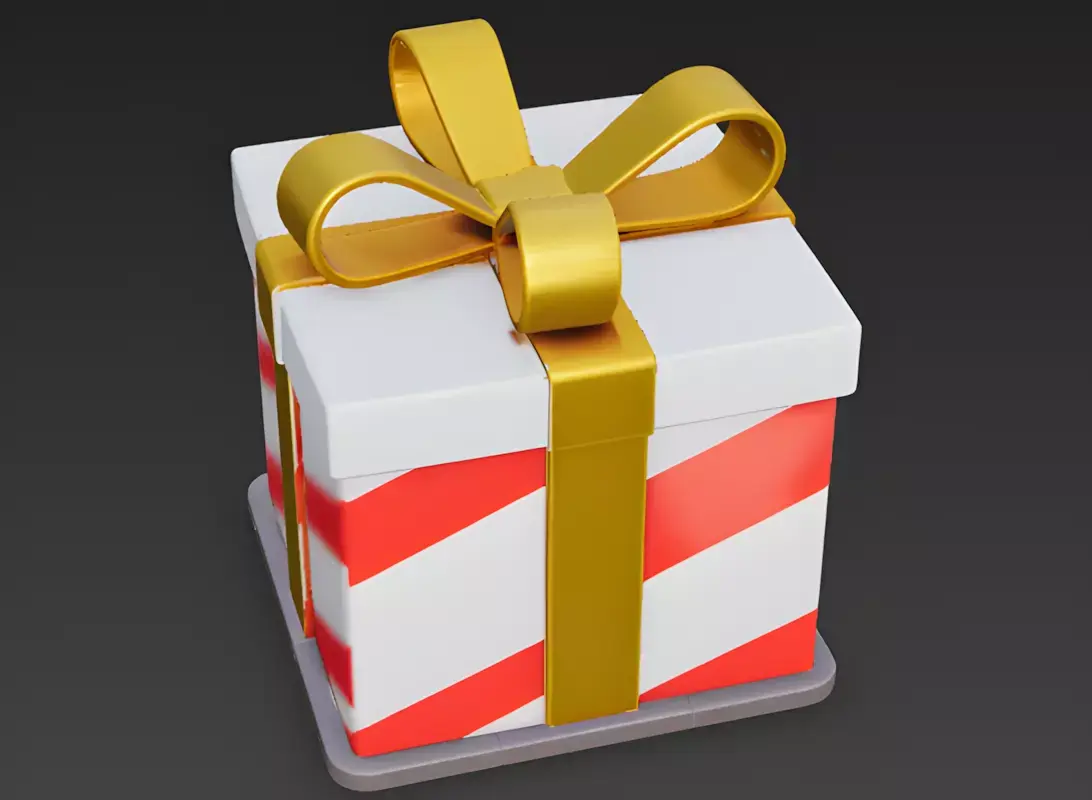 Files Included: FBX, GLB, OBJ, STL, ZIP (Textures).Quick Tip: The Golden Bow and the Greeting Note are separate mesh attachments. You can easily remove the note to make the building look like a generic gift, or change the color of the red stripes to green for a quick Christmas-themed seasonal update.