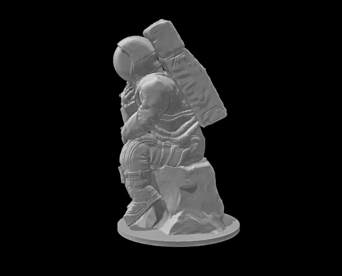 The work depicts a nude male figure of heroic size sitting on a rock. He is seen leaning over, his right elbow placed on his left thigh, holding the weight of his chin on the back of his right hand. The pose is one of deep thought and contemplation, and the statue is often used as an image to represent philosophy.