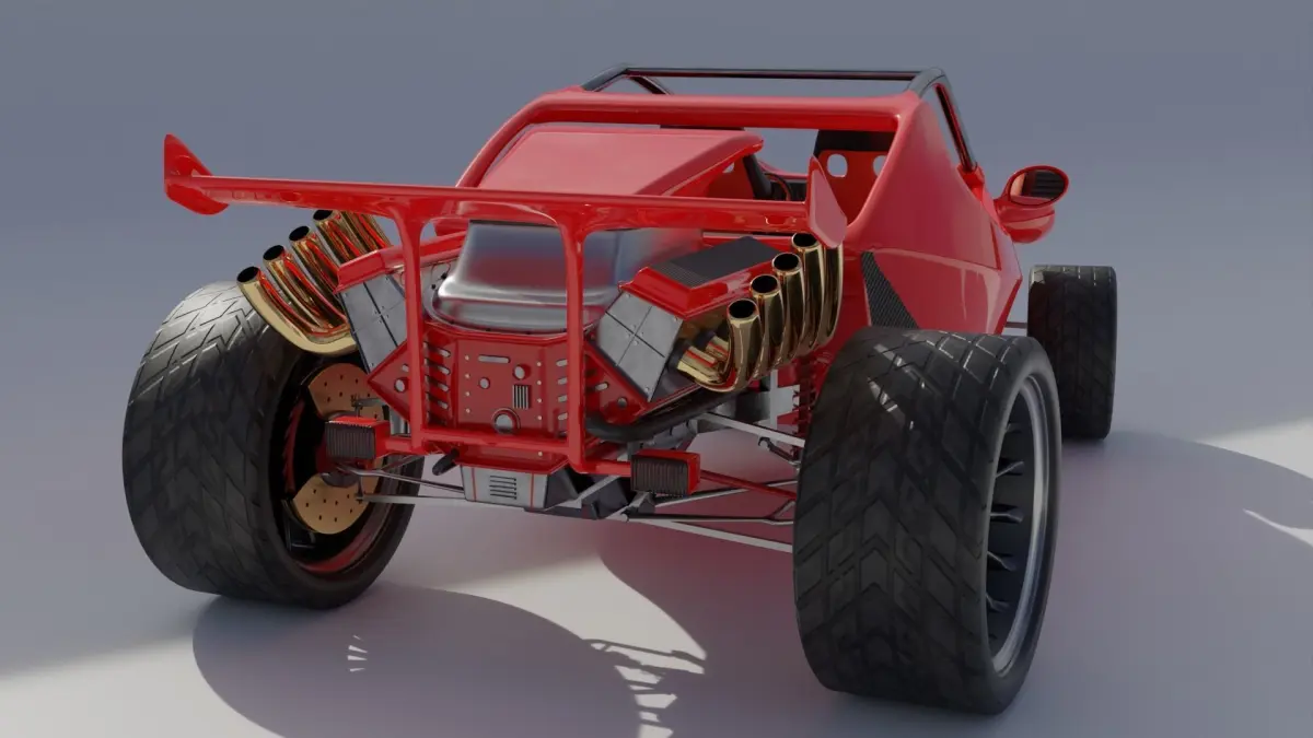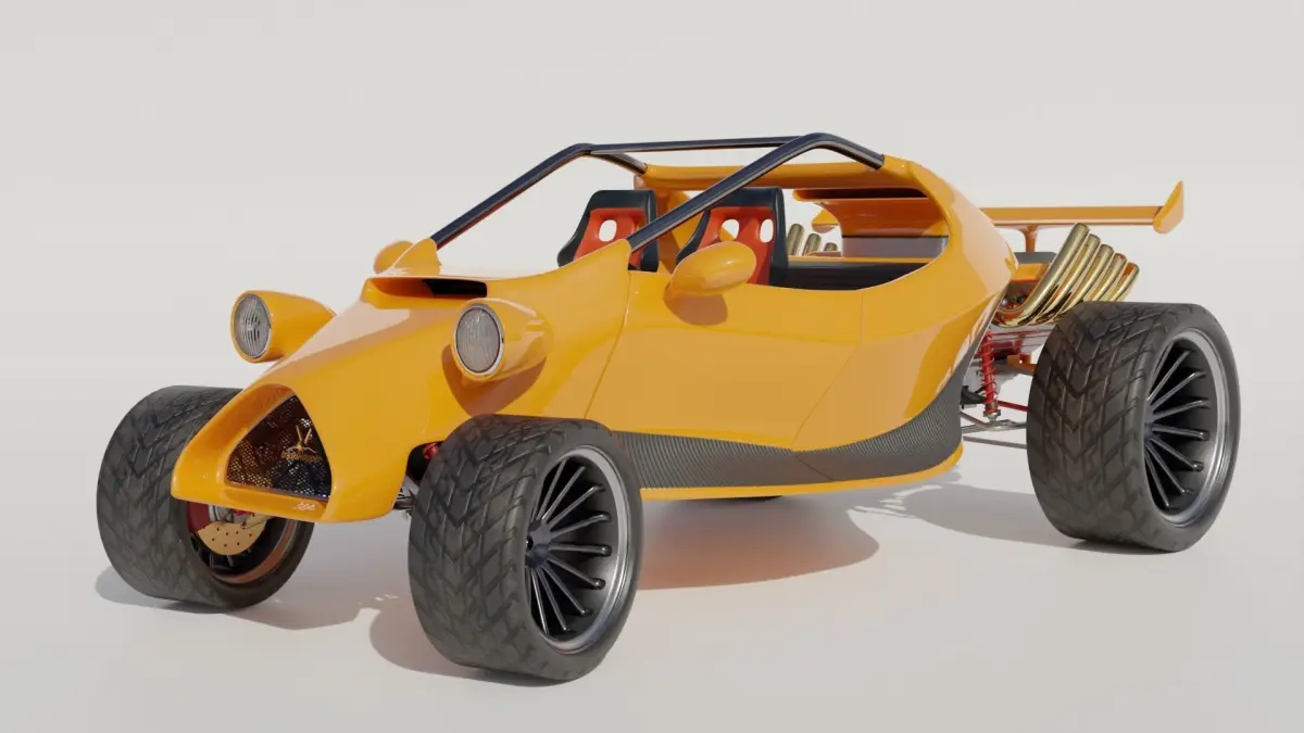 Fully rigged Hot rod buggy car with 8 different colors in muddy and clean versions, also include a pose control panel in the blender version.