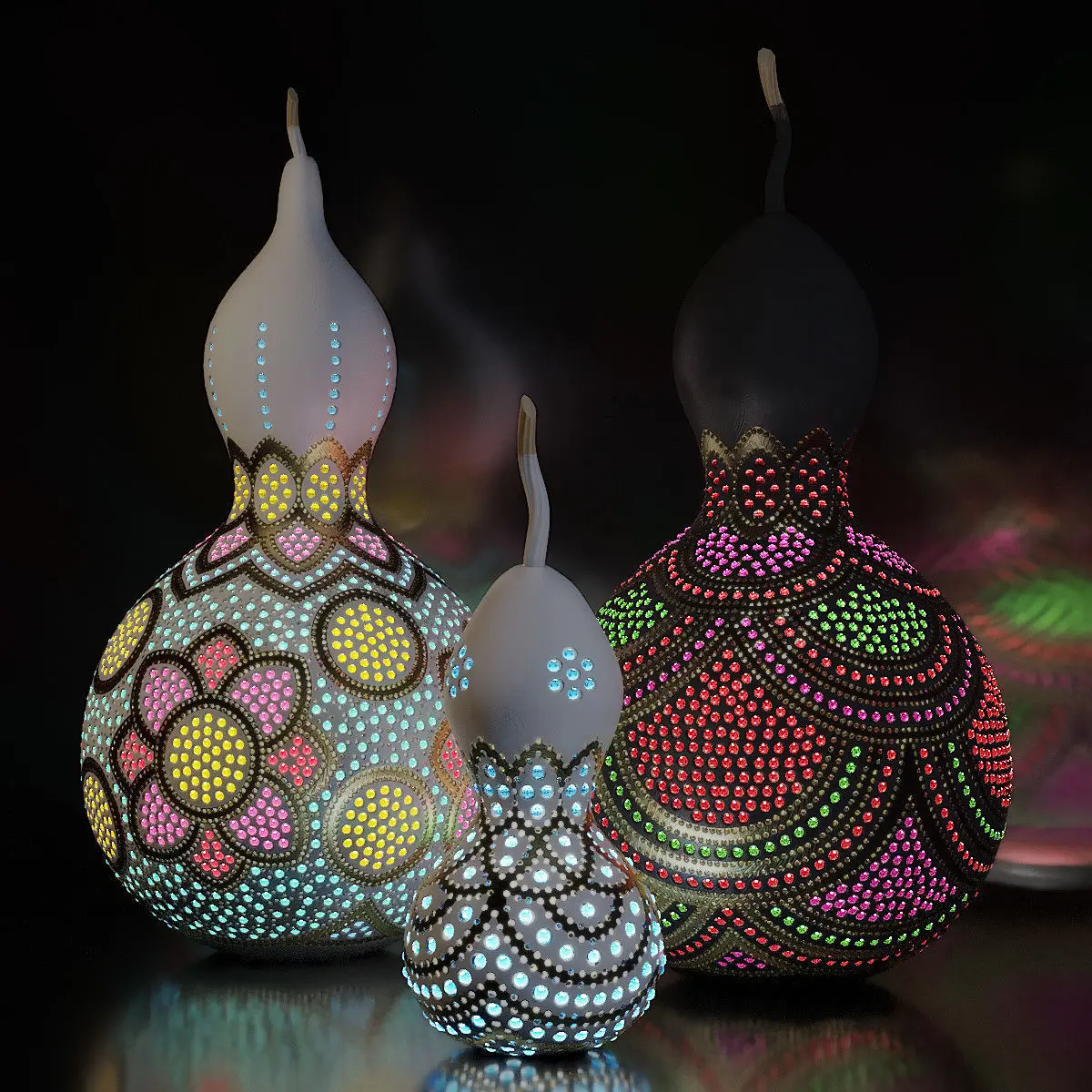 Pumpkin lamps are an old decorative craft.It is especially popular in Turkey. The pumpkin is made by hand, each master has his own handwriting.The surface of the pumpkin is varnished and carved. Large apertures inlaid with colored glass beads