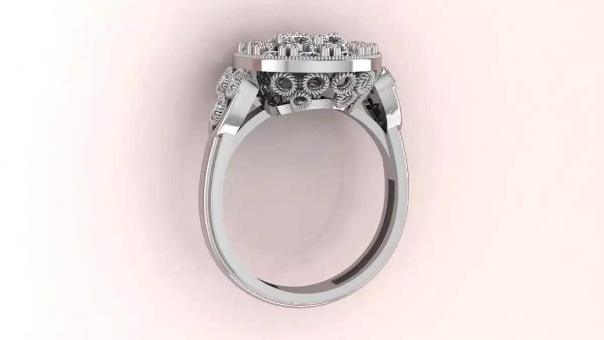An opulent, vintage-inspired design with a large, intricate diamond setting, perfect for a grand statement.