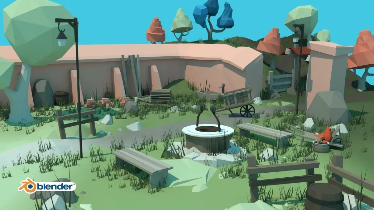 A package with assets and blend file in old downtown props style covers everything you need to create your own town and its surrounding.