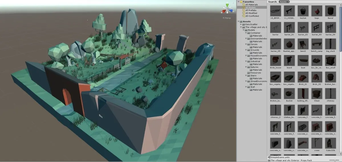 It includes over 150 props to fill your exterior like fences, carpentry stuff, street and house props, town elements like bridges or walls and other small things to give it personality.