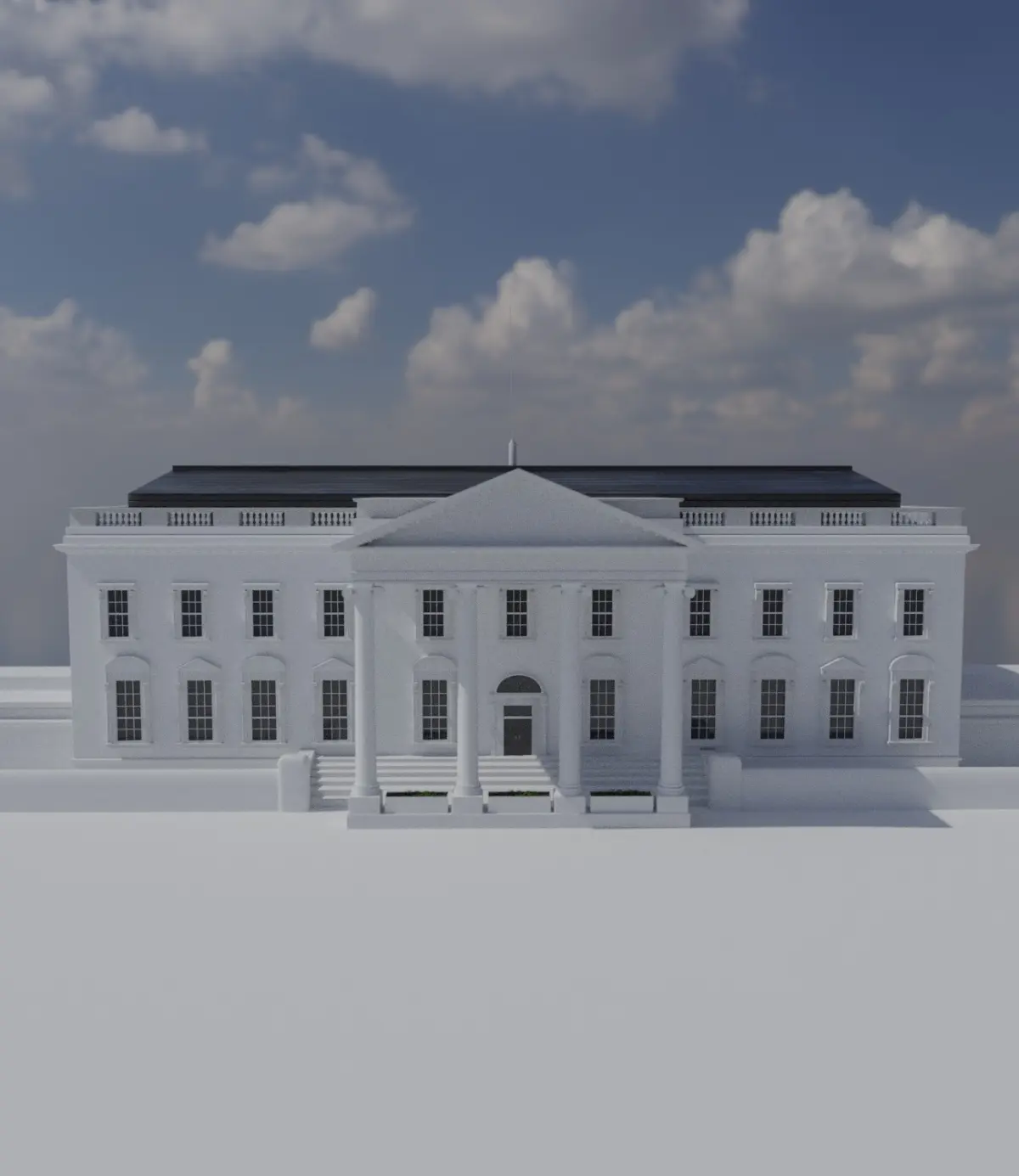 The White House model is designed with a polycount of under 120,000 polygons, balancing exceptional visual detail with optimal performance for game engines. Every aspect of the building's façade, including its neoclassical columns, ornate windows, and intricate roofline, is rendered with high accuracy to ensure a lifelike representation.