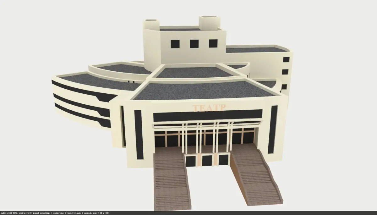 The 3D model of the Ust-Kamenogorsk Theater beautifully captures the essence of artistic expression and cultural significance. This meticulously crafted representation brings to life the iconic theater, a symbol of Ust-Kamenogorsk's vibrant arts scene and creative heritage.