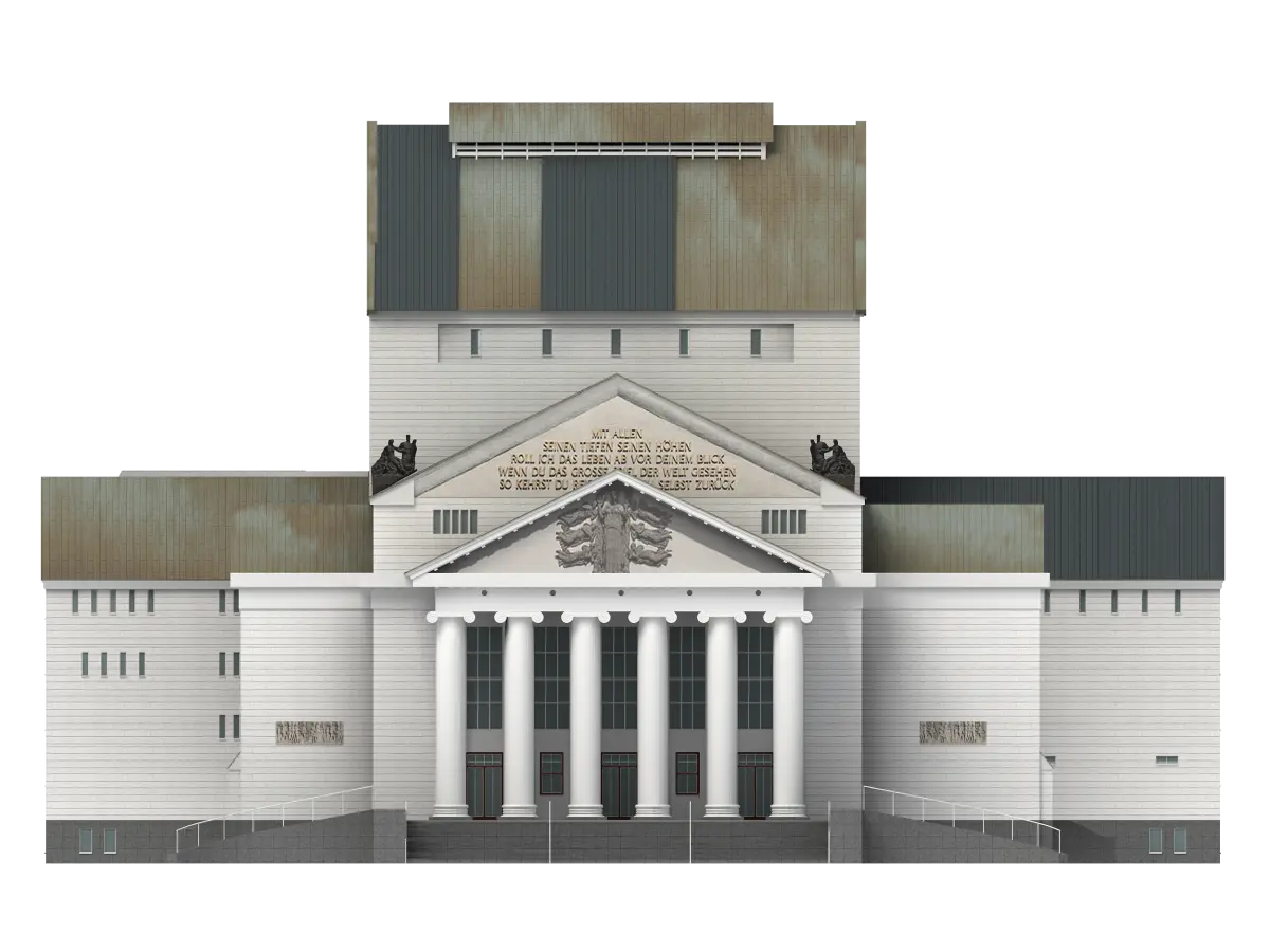 Duisburg’s City Theatre has 1,117 seats. It is located in the city centre. The theatre was built in 1911-12 in neoclassical style and designed by the architect Martin Dülfer. Duisburg Theatre is one of the venues of the Deutsche Oper am Rhein, a theatre association established in 1956 by the cities of Duisburg and Düsseldorf. The theatre does not have its own company of actors but works closely with the renowned Bochum Theatre and also with the well-known “Theater an der Ruhr” of Mülheim an der Ruhr.