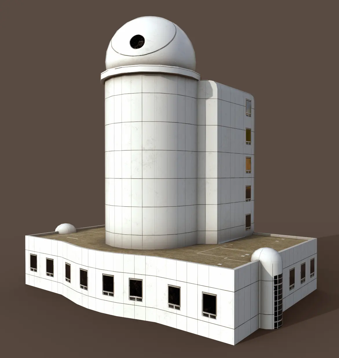 Low poly model of THEMIS Telescopeo, it is pbr with 4k resolutions. This is low poly model with 651 polys. This is ideal opportunity to decorate your scene with object that will be in other plans, and that would be seen from a long distance.Included textures: UE4, Unity, Metallic roughness, Vray, Corona textures (4k)