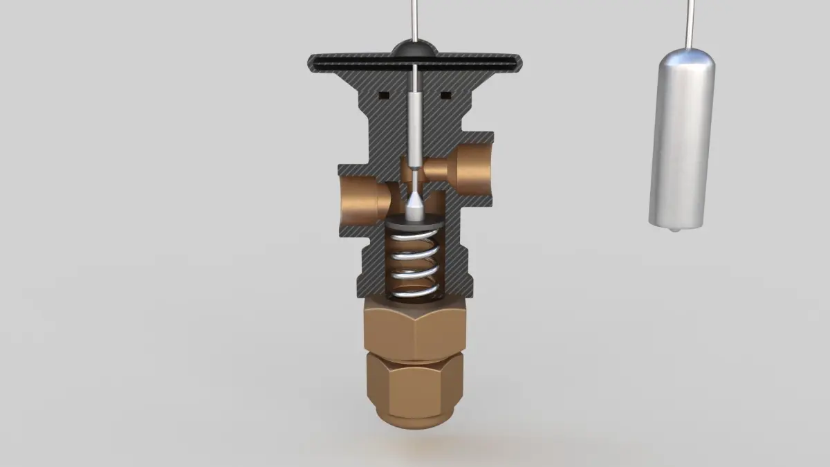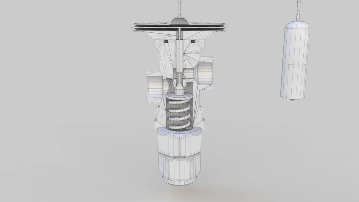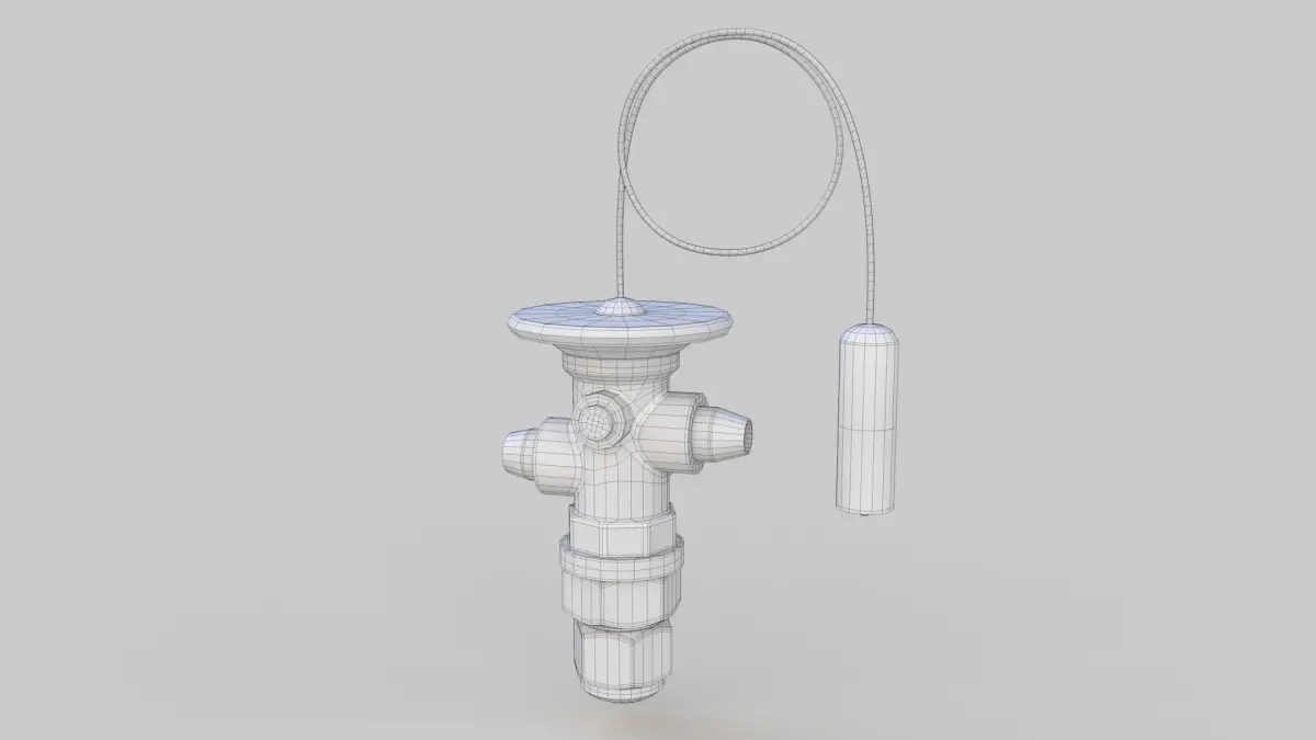 3D model of a Thermal Expansion Valve or Metering Device used in most household applications.