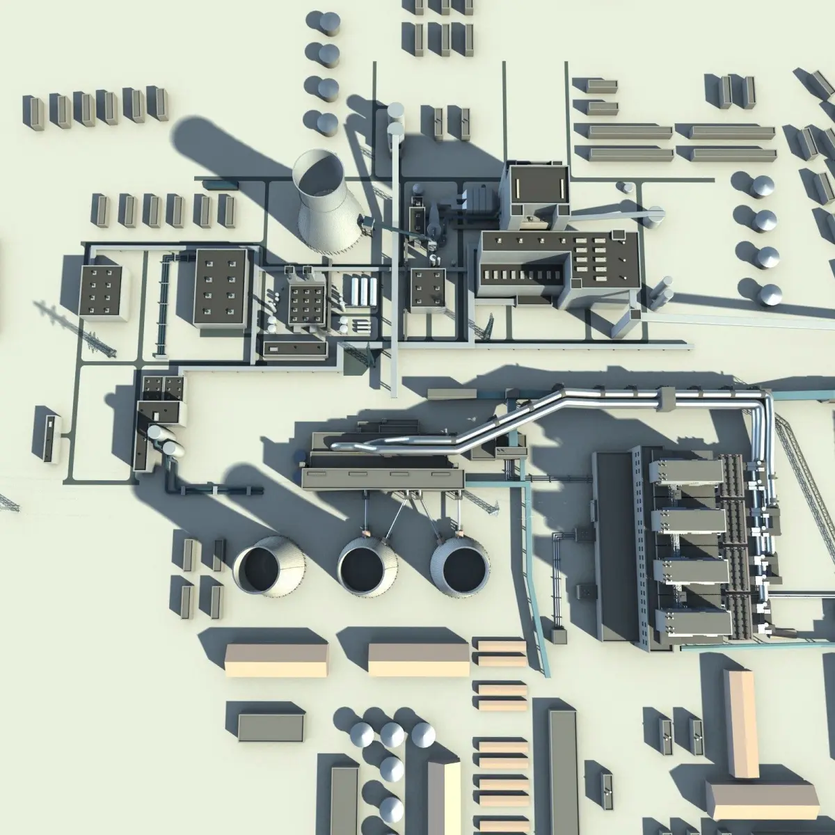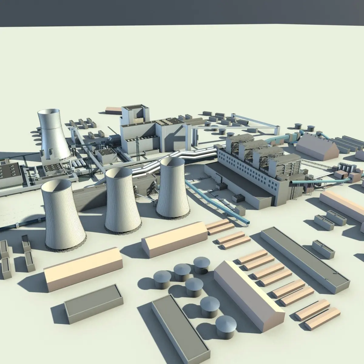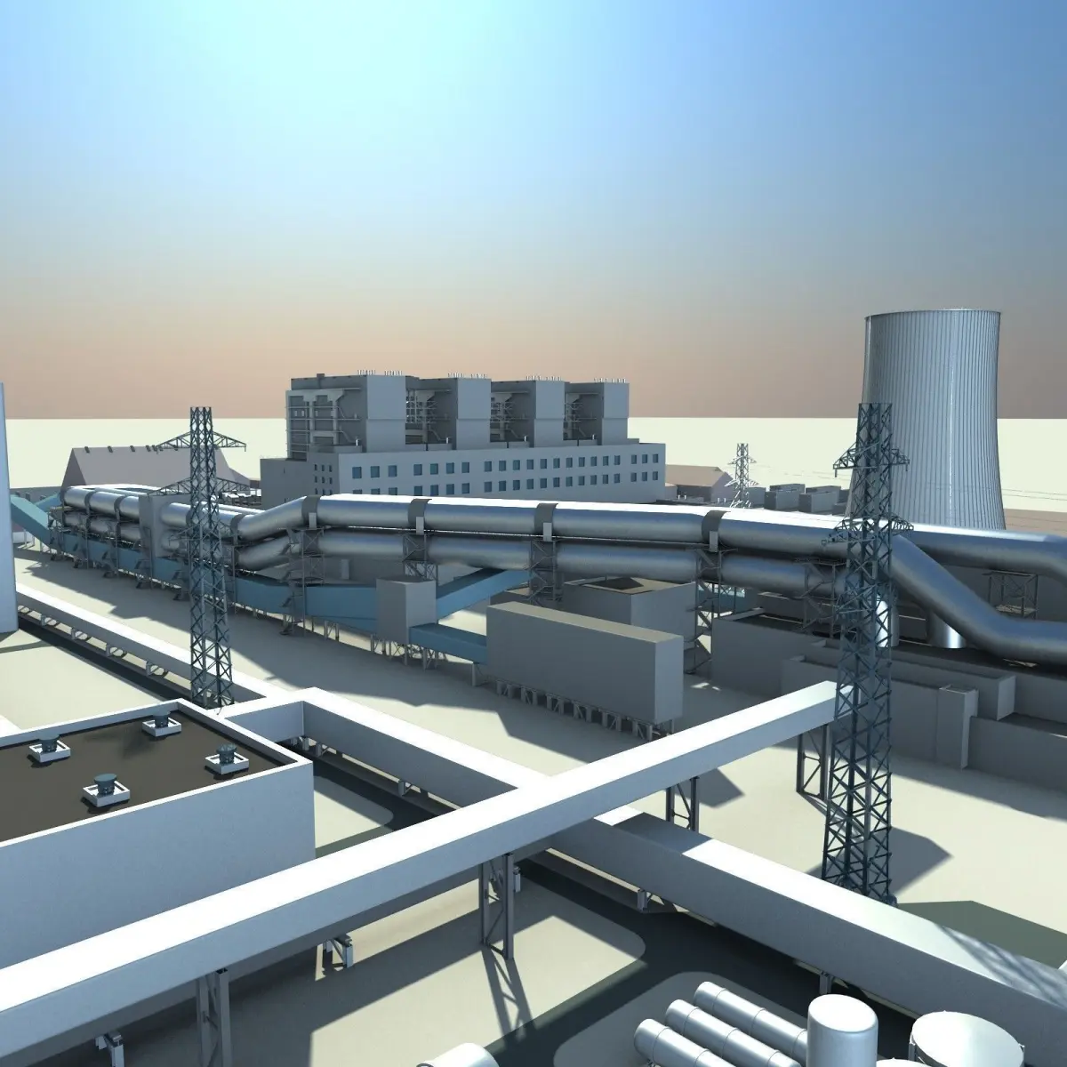 Thermal power plant Rendered in VrayInclude Materials and lights