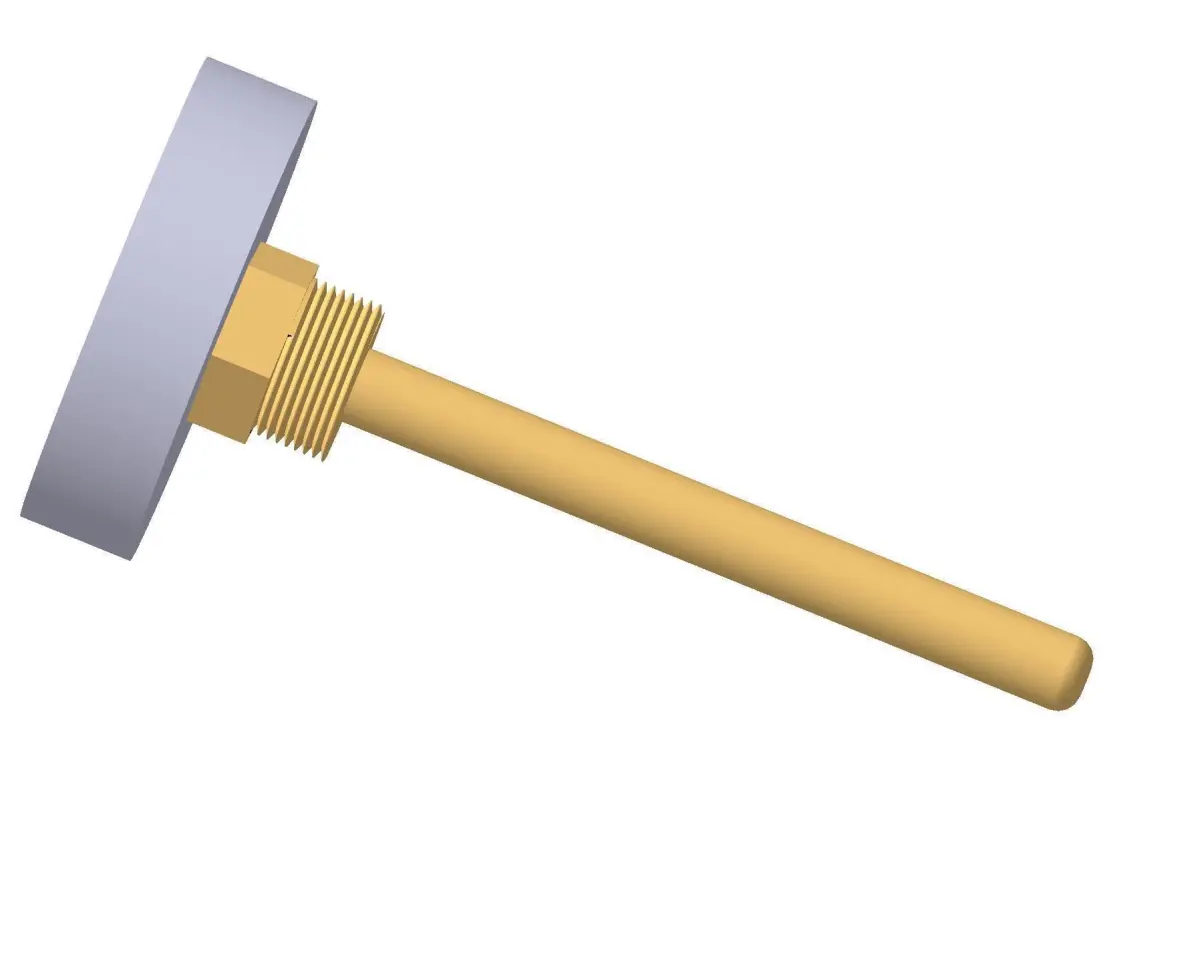 File extensions: .m3d .igs .sat .stl .stp .wrl .x_b .x_t .c3dThermometer d63 mm in a sleeve L100 mmFull compliance with the original dimensions.Very useful when designing boiler rooms, plumbing systems, etc.One of the pictures shows an example of the use of pressure gauges in a boiler room 3d project.I can make custom models of fittings for pipelines and much more. Any level of complexity and detail.