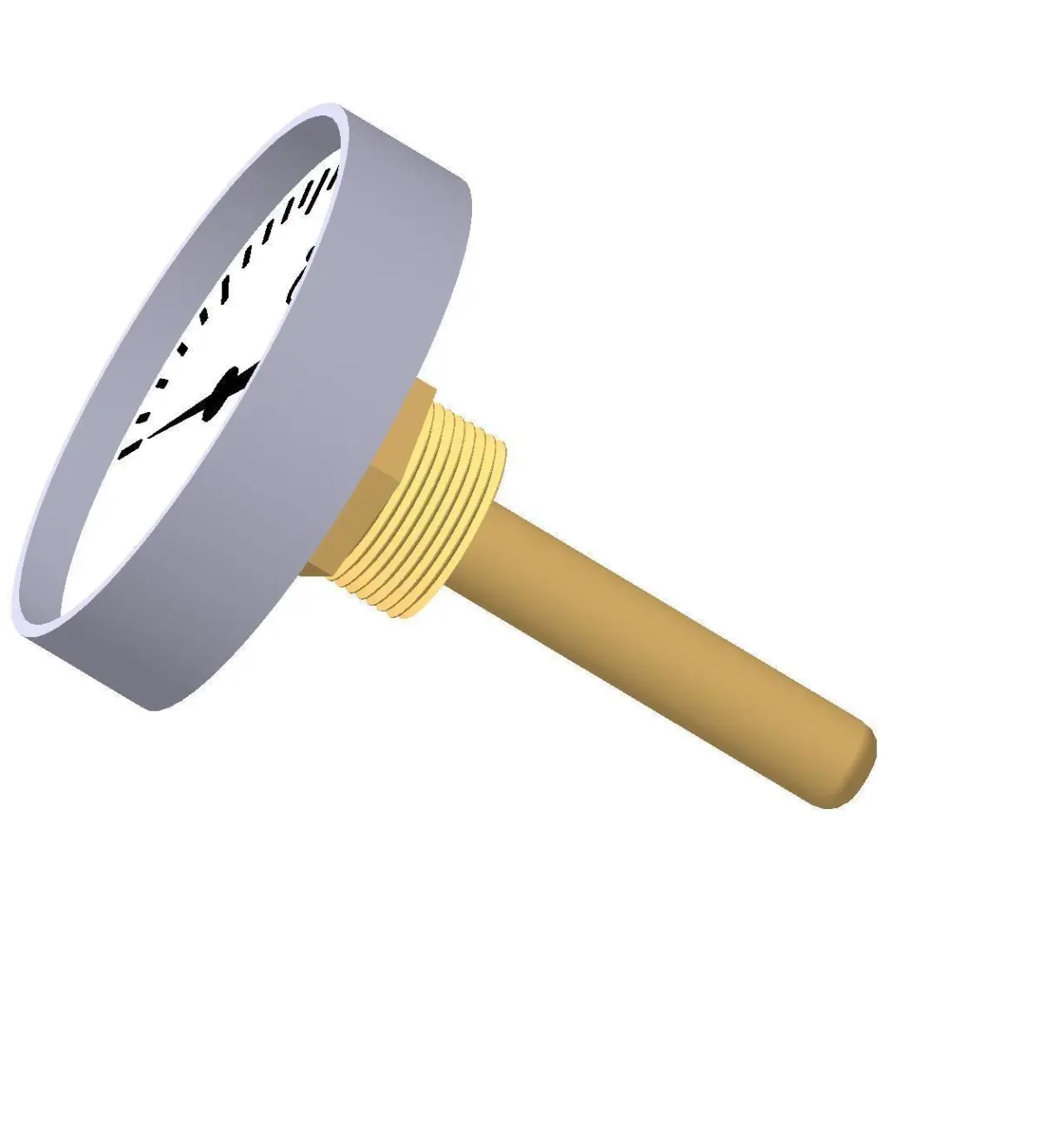 File extensions: .c3d .igs .m3d .sat .stl .stp .wrl .x_b .x_tThermometer d63 mm in a sleeve L50 mmFull compliance with the original dimensions.Very useful when designing boiler rooms, plumbing systems, etc.One of the pictures shows an example of the use of pressure gauges in a boiler room 3d project.I can make custom models of fittings for pipelines and much more. Any level of complexity and detail.