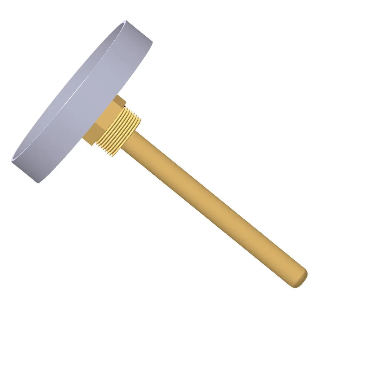 File extensions: .m3d .igs .sat .stl .stp .wrl .x_b .x_t .c3dThermometer d80 mm in a sleeve L100 mmFull compliance with the original dimensions.Very useful when designing boiler rooms, plumbing systems, etc.One of the pictures shows an example of the use of pressure gauges in a boiler room 3d project.I can make custom models of fittings for pipelines and much more. Any level of complexity and detail.