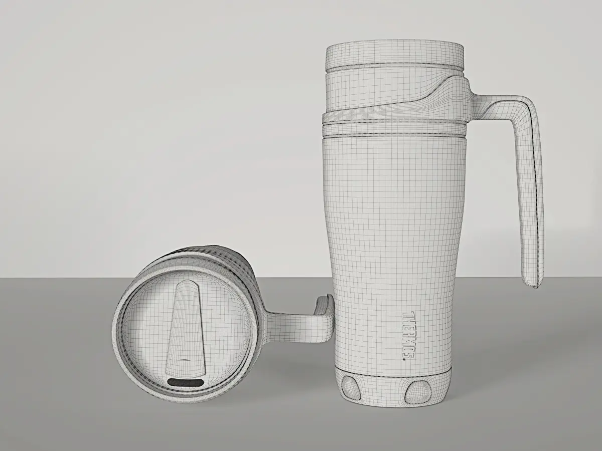 High-quality, real-world scale Thermos Mug 3D Model.Mug modeled using Autodesk Maya and Rendered using V-Ray Next.No lights and cameras are available in the file.Preview images were rendered using a V-Ray Physical Camera and applying basic HDRI lighting using V-Ray Dome Light.Stainless Steel texture from Poliigon.com.Thermos logo is modeled using Maya SVG tool.The model is separated and named according to each part.