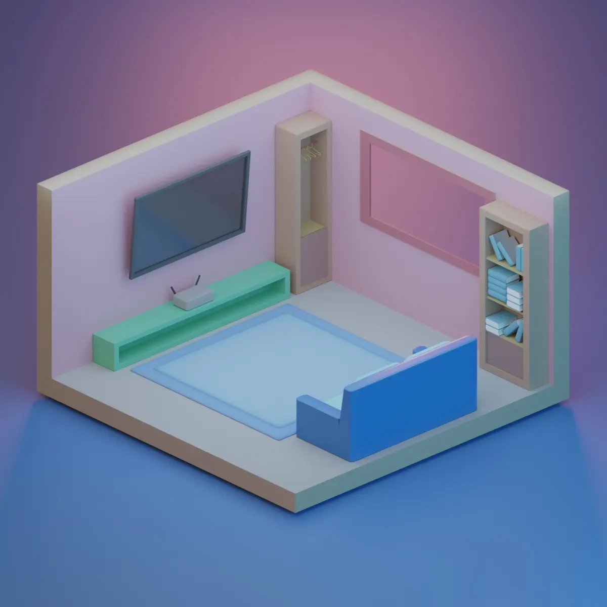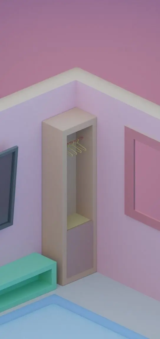 The living room is slightly decorated in pastel colors that give a feeling of comfort. It is beautiful and simple. Suitable for living with family and children.together with sofa,television,bookcase,carpet,wardrobe,hanger,window,book,shelf