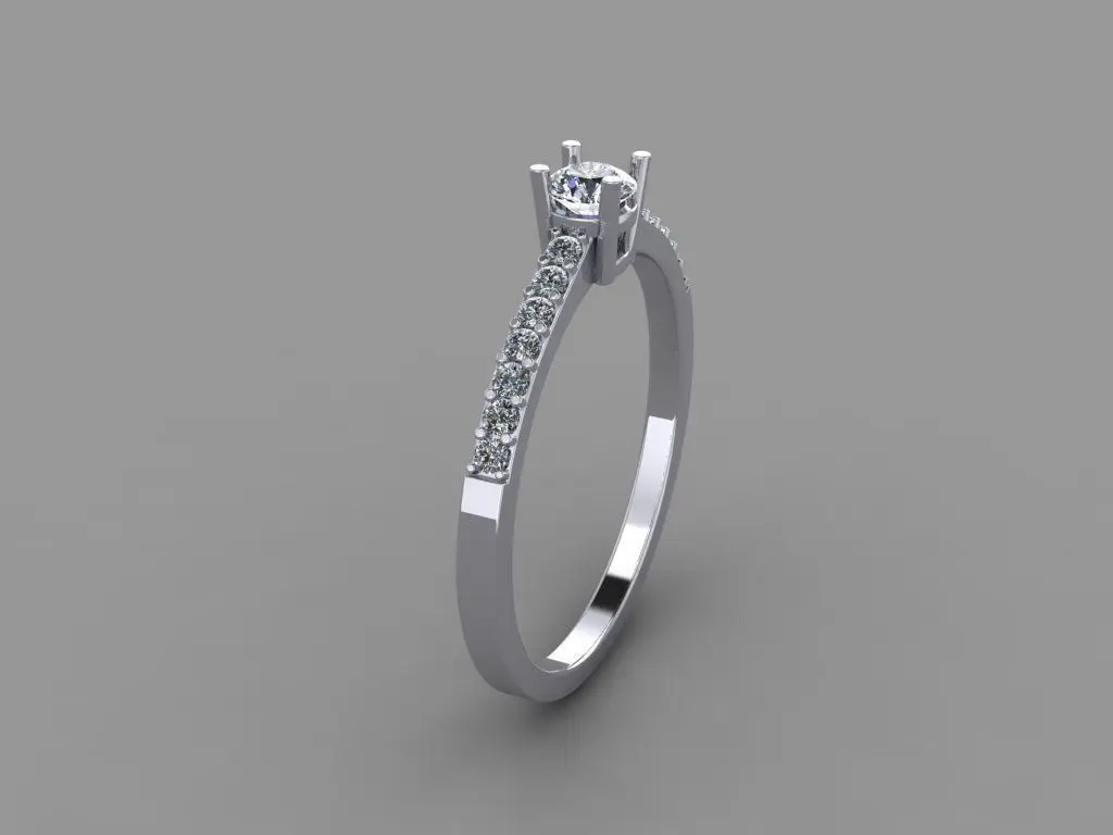 Hi, this ring comes full of files for print, cast, and render purposes. Design is light in metal weight with rounded corners for easy wear and fast finishing. Diamonds properly design for easy fast setting. More ring sizes available in this design For any questions please contact me.