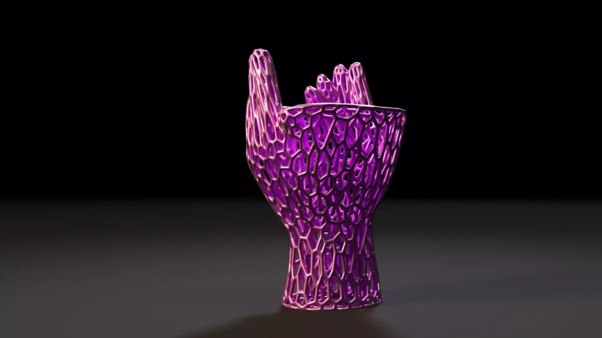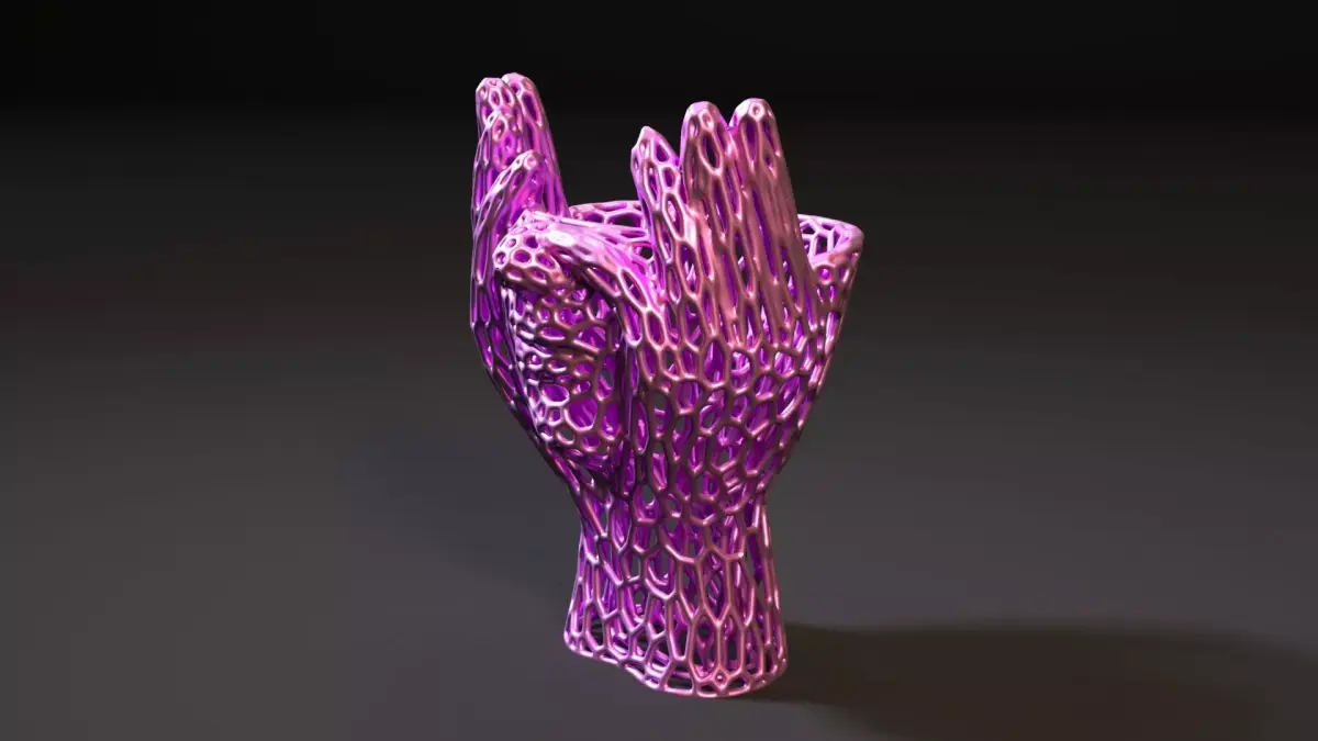 This exquisite decorative statuette is an image of complex hands, made in the modern Voronoi style. The model is ideal for interior use, and can also become an original lamp when adding a light source inside.