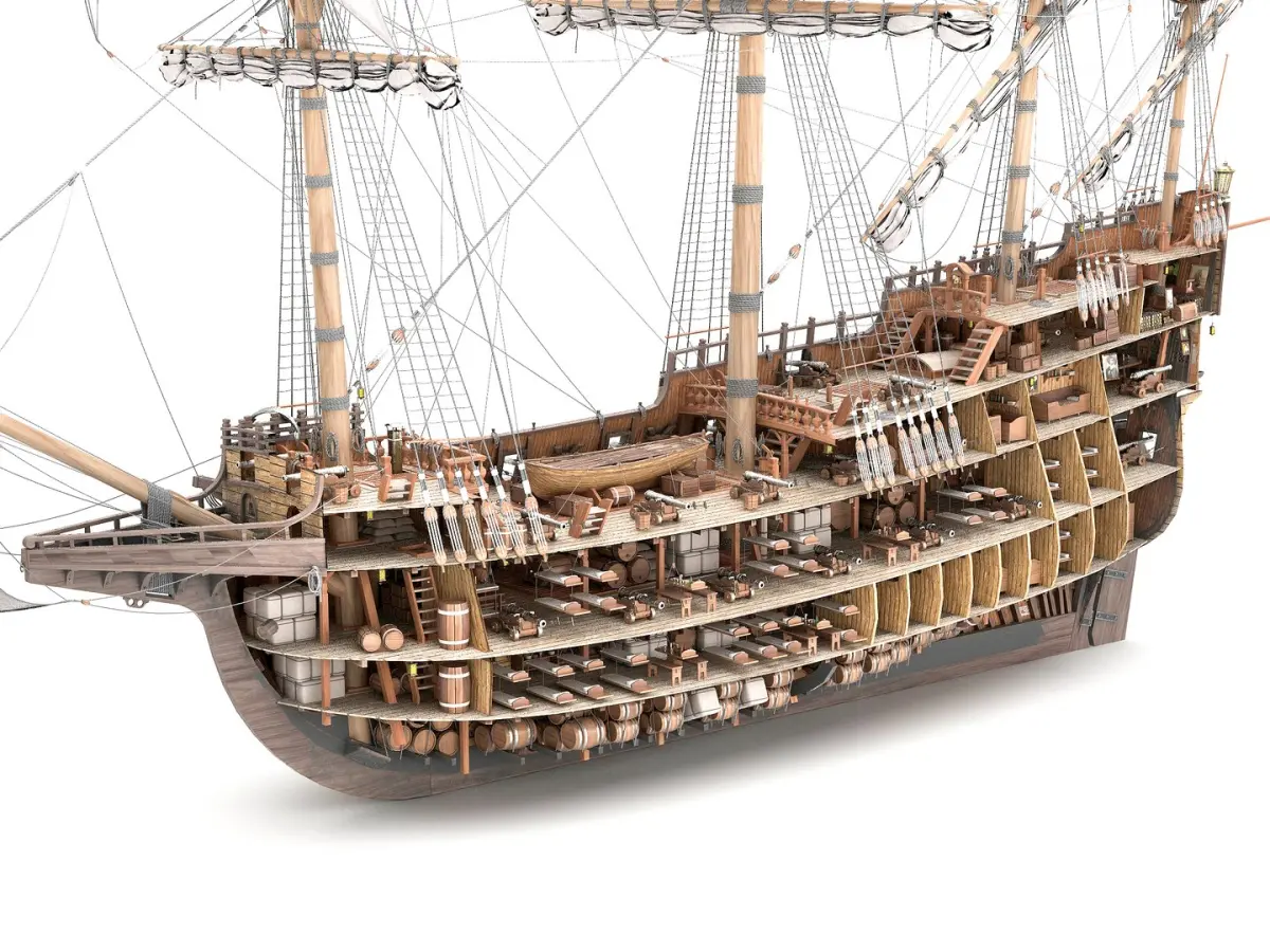 Galleons were large, multi-deck sailing ships, first used as armed cargo carriers by European states from the 16th to 18th centuries during the sail era, and were the main vessels intended for use as warships in the mid 1600s.