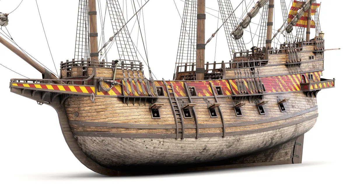 Galleons were large, multi-deck sailing ships, first used as armed cargo carriers by European states from the 16th to 18th centuries during the sail era, and were the main vessels intended for use as warships in the mid 1600s.