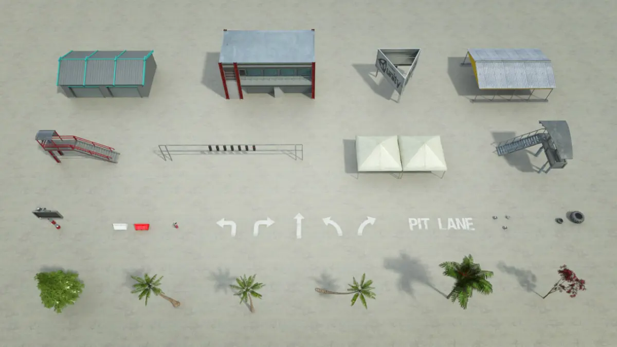 This Race Track Construction Kit: Add-on Pack B provides additional art content to the Race Track Construction Kit (also available for purchase from CGTrader).