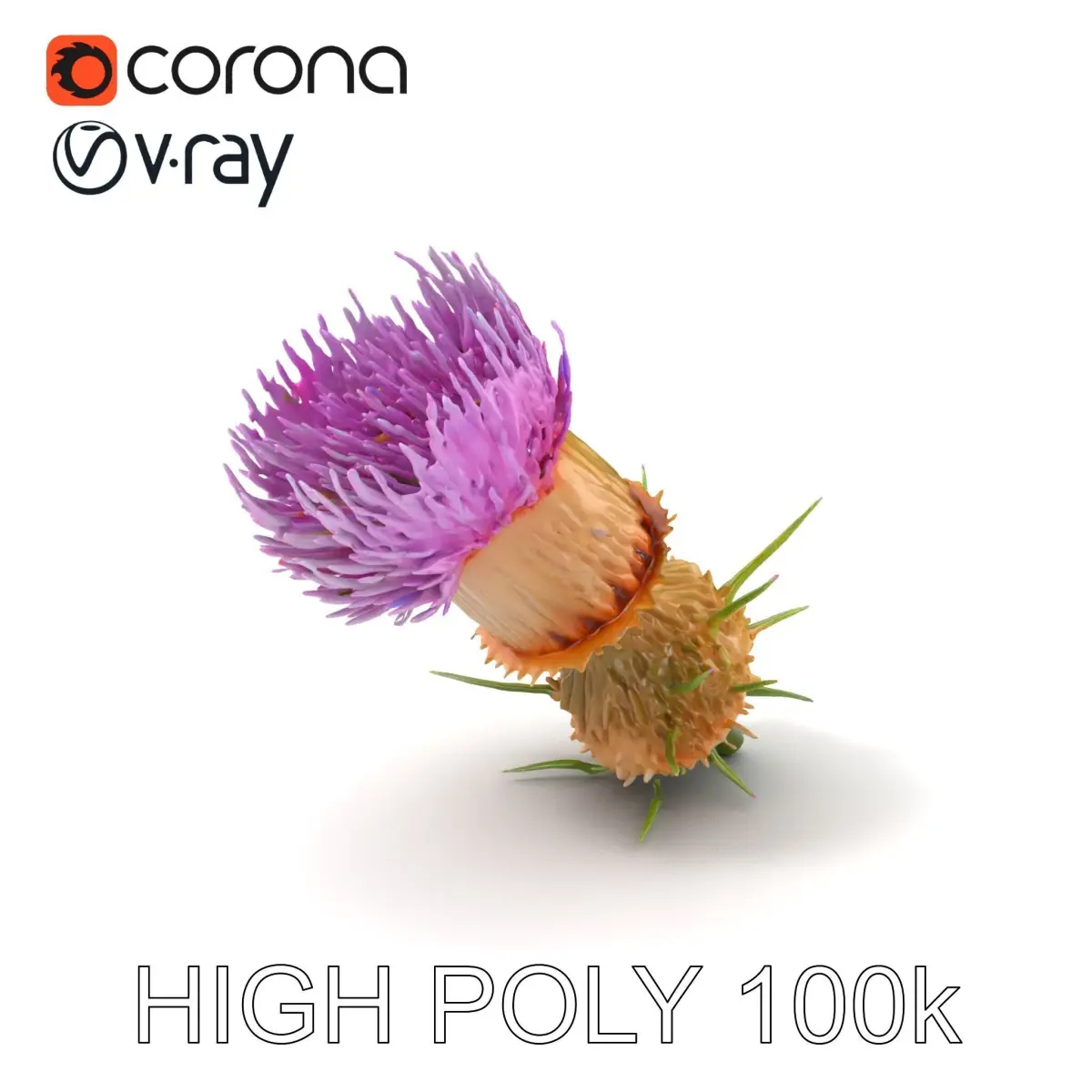 Each model has 3 levels of detail: low-poly, middle-poly, and high-poly, which allow for the use of this model in production rendering (such as 3ds max, Maya, Cinema4d, Blender, Vray/Corona/Cycles, and all others), game engines (Unity and Unreal compatible), and interactive presentations, providing a choice of detail based on the LOD System principle. This thistle flower model can be used in botanical visualizations, nature-themed projects, and virtual gardens. The model's textures are PBR, Diffuse, NormalMap, and reflection/roughness/metallic, which are suitable for any modern rendering engine. All models are accurately unwrapped and have no overlapping UV. All textures are 4096*4096 in size. Please like and leave a comment if you find this model useful.