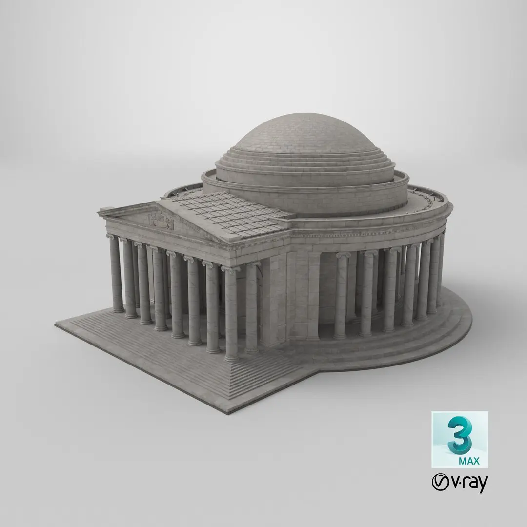 Thomas Jefferson Memorial is a high quality, photo real 3d model that will enhance detail and realism to any of your rendering projects. The model has a fully textured, detailed design that allows for close-up renders, and was originally modeled in 3ds Max 2014 and rendered with V-Ray. Renders have no postprocessing!