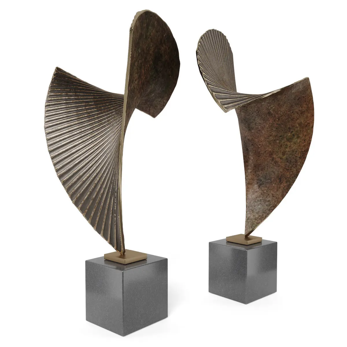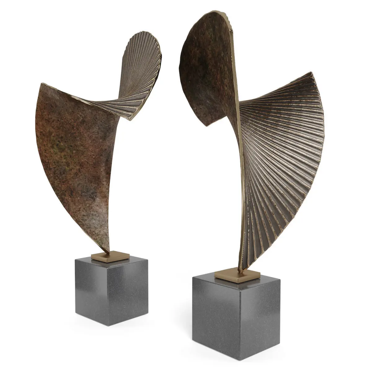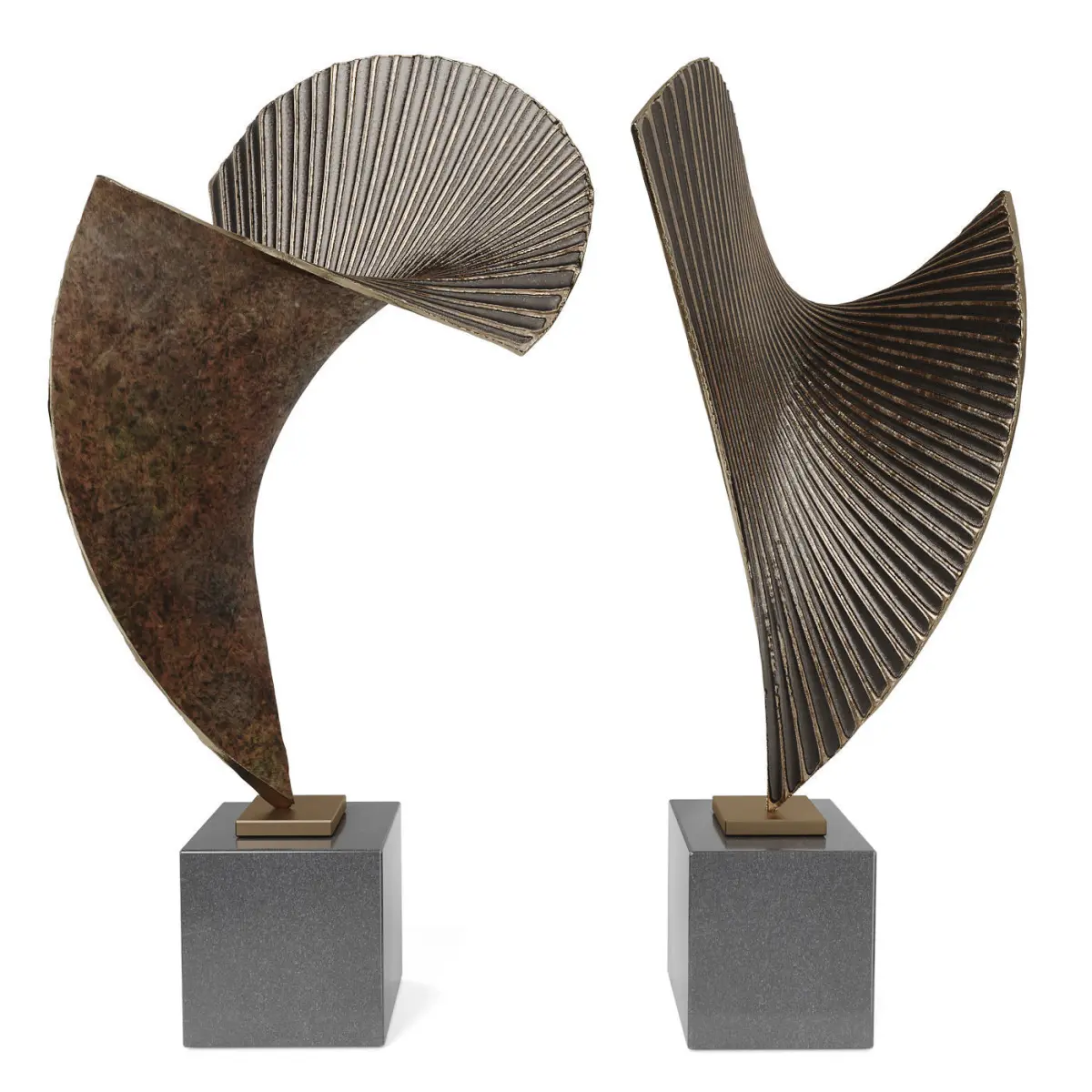 Cast bronze with layered and colored patina200x450mm HightModern Abstract Garden sculpture,Polished Bronze Contemporasry statue by Thomas Joynes whose Eclipse is a Stunning Abstract Cast Bronze Symetric Garden Sculptures For sale.It has a finish of one surface being Highly Polished and the other Textured with a Black Patina. The form is inspired by the Flowing Spiral of a Nautilus Shell and the finish has been influenced by the Cast Bronze Abstracts of Modernist artists like Brancussi and Arp.