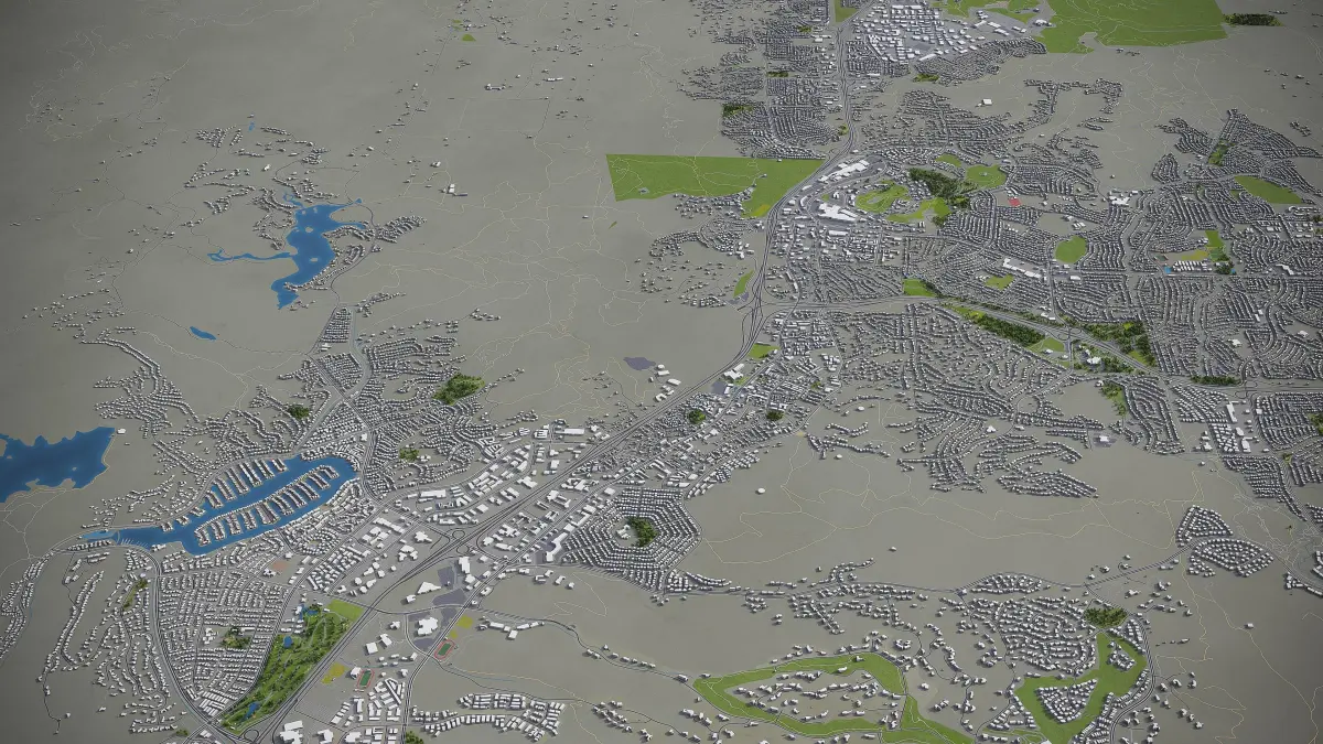 - Full city extents up to 100 x 100 km — or crop to an area of interest for better format compability and scene performance
