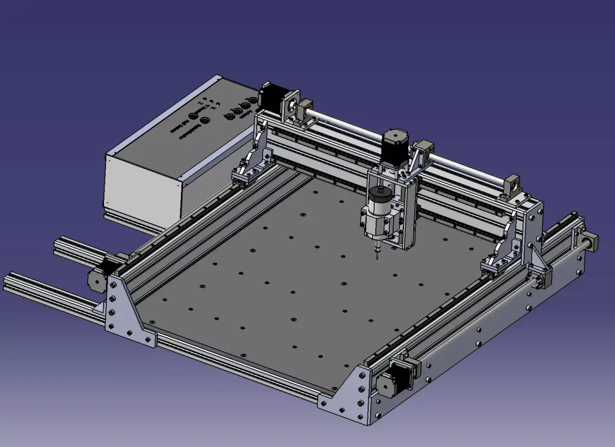 This 3D model of a three-axis engraving machine serves as its perfect digital twin, showcasing the core structure comprised of a rigid bed, a sturdy gantry, and the three linear motion axes (X, Y, and Z). It demonstrates how motors drive ball screws and linear guides to precisely control the movement of the cutting tool attached to the spindle through three-dimensional space, enabling the transformation of digital designs into physical carved objects. More than just a visual aid, this model acts as the definitive design blueprint for interference checks, performance analysis, and generating manufacturing drawings.