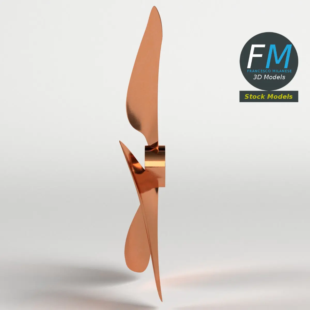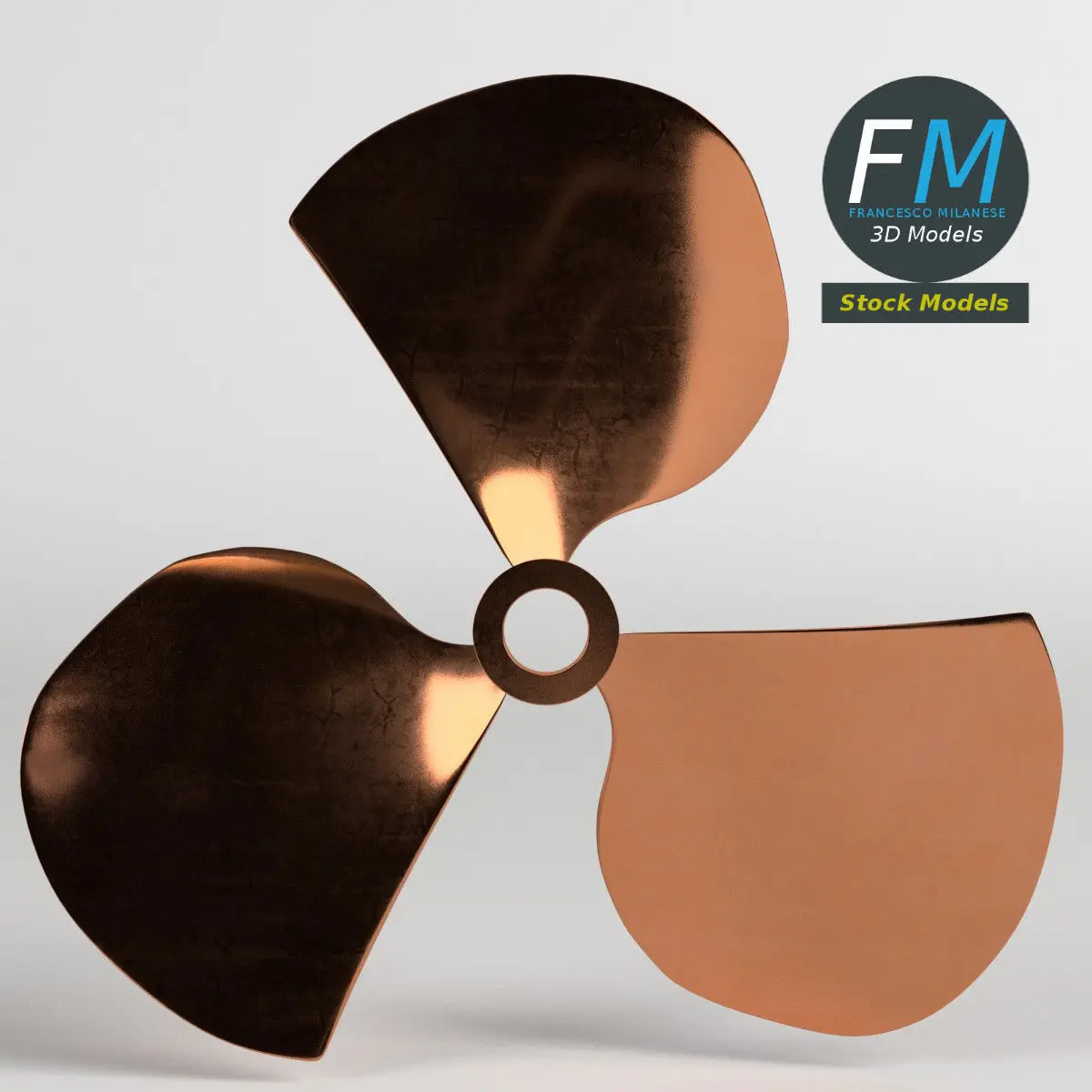 Three blades propeller fan 3D Model. Production-ready 3D Model, with PBR materials, textures, non overlapping UV Layout map provided in the package.Quads only geometries (no tris/ngons).Easily customizable: UV unwrapped geometries, so you can create new Textures (or modify the existing ones) using the UV Layout maps provided in the package (as png with alpha).Each Object, Material or Texture provided in the package has a unique, meaningful name.Made in Blender (Cycles / Eevee materials) then exported to OBJ and FBX; materials and textures made in Substance Painter, exported for PBR, V-Ray, Unity, Unreal.PROMO IMAGES: the first image has been rendered in Cycles (or Eevee) for Blender; in particular, you can find 11+ promo images in this description: