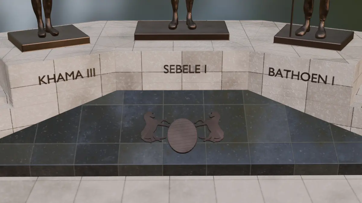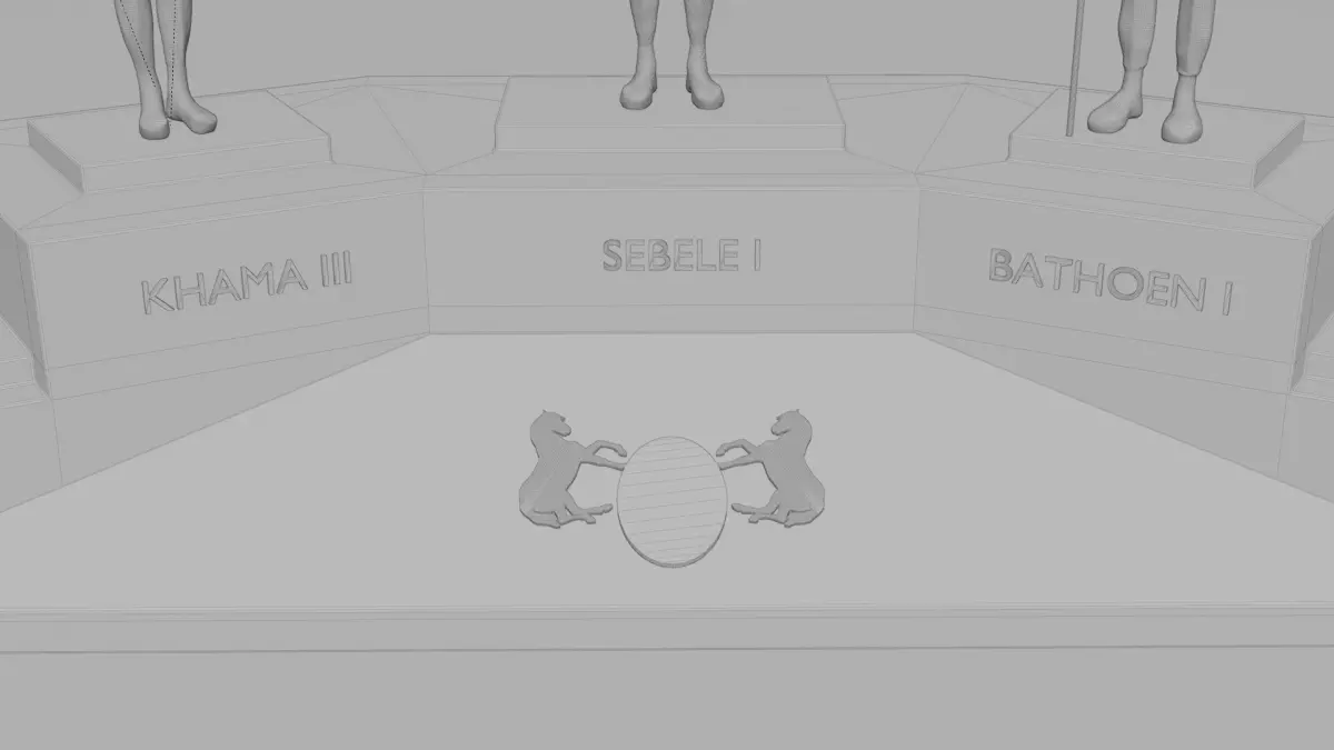 Famous landmark located in Botswana, The Three Dikgosi Monument is a bronze sculpture located in the Central Business District of Gaborone, Botswana. The statues depict three dikgosi, or tribal chiefs: Khama III, Sebele I, and Bathoen I. The three dikgosi played important roles in Botswana's independence.