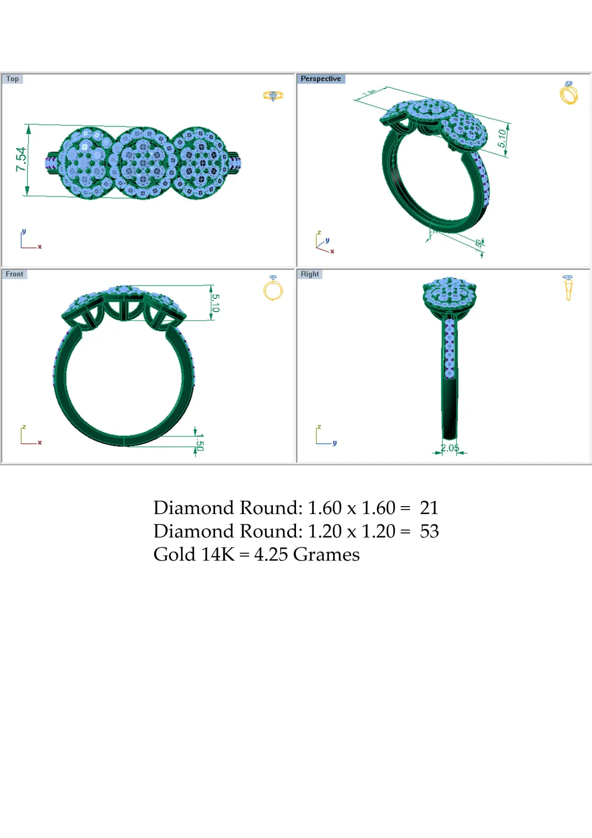 Three Flower Diamond Ring 3D print model