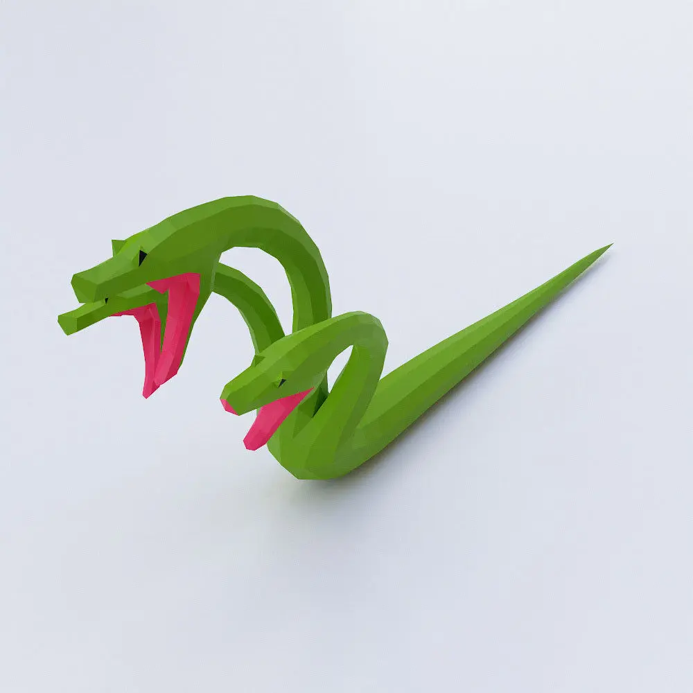 Three headed snake model is a lowpoly game ready 3d model. Model has no separate meshes. No texture.You can use obj and fbx format to import inside other programs like 3dsmax , Houdini , Blender, C4d , Unity 3d ,unreal and many more .