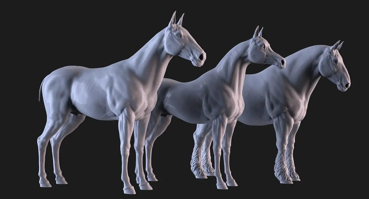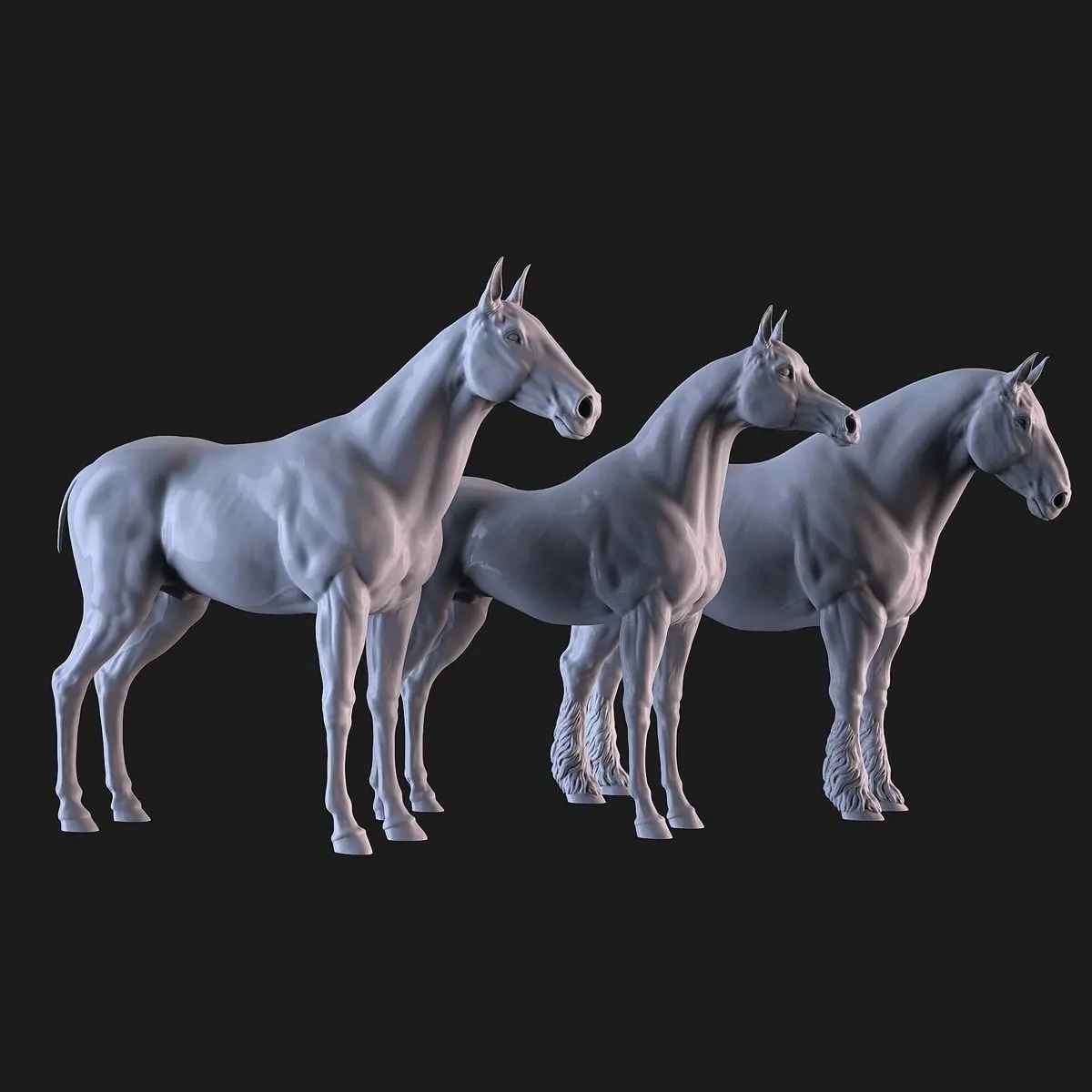 Three Horse Breeds High Poly, sculpted in ZBrush 2023.